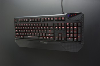 Die Durandal Ultimate G1NL ist in 4 Varianten verfügbar, obwohl sich rein von der Optik her keinerlei Unterschiede ausmachen lassen. Der Unterschied liegt im Inneren, die einzelnen mechanischen Tasten (Cherry MX) sind in den Variationen Blau, Rot, Braun und Schwarz erhältlich und unter scheiden sich im Druckpunkt und dem Weg von der Ausgangsposition zum Schaltpunkt. Als Laie wird man kaum einen Unterschied bemerken, Pro-Gamer und Dauertipper hingegen können sich ihren Favoriten rauspicken. Für unseren Bericht nutzten wir die roten Schalter.