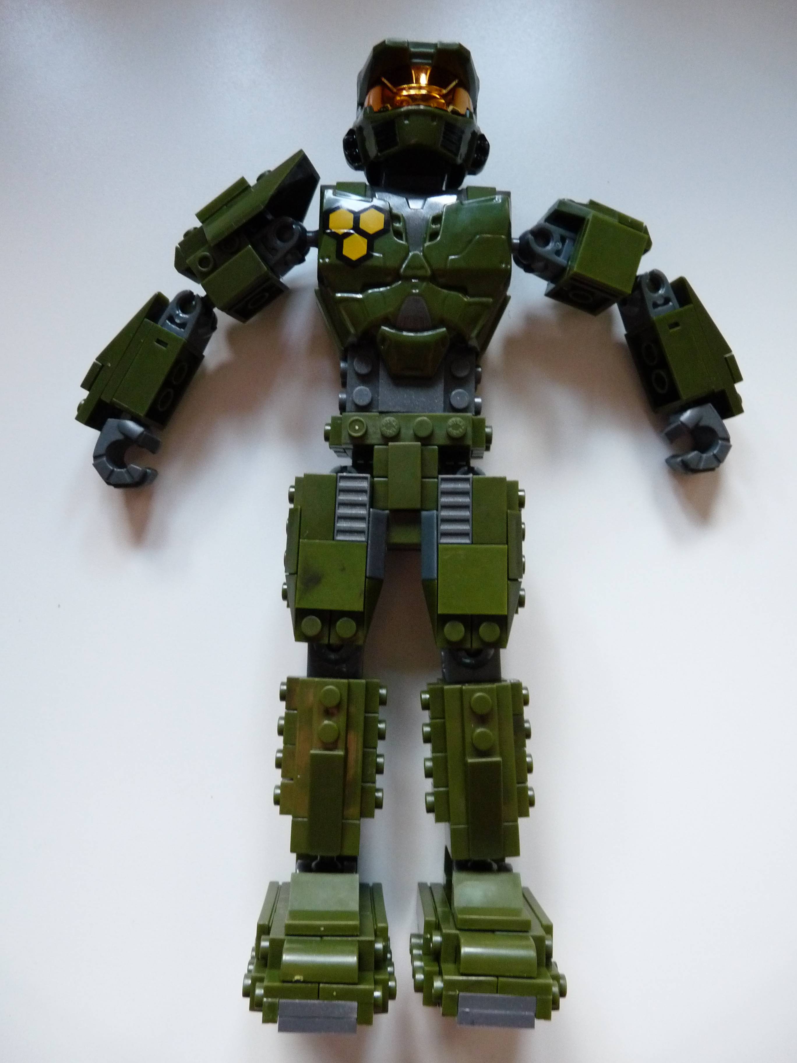 Eine knappe Stunde und 214 Teile später steht er in voller Pracht vor uns, der grüne UNSC Spartan II. Der nackte Spartaner ist 24 cm groß, während es das fertige Display, also mit Hintergrund und Bodenplatte auf 29 cm schafft. Optisch macht das Set jedenfalls einiges her und ist ein echter Hingucker.