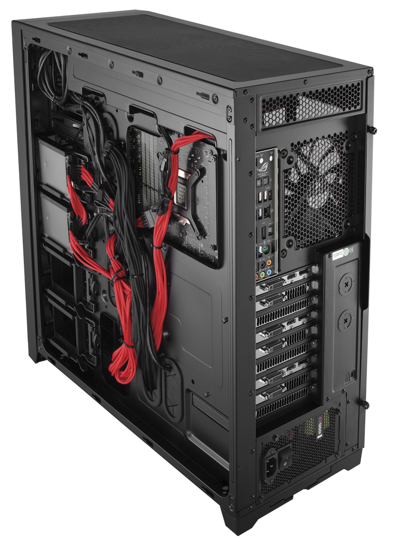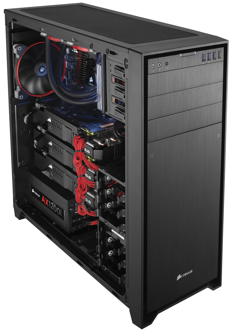 Das Obsidian Series 750D verfügt über eine stabile Verkleidung und bietet reichlich Platz für Ihre Hochleistungskomponenten und die modernen Kühlsysteme, mit denen Sie die optimale Leistung aus diesen Komponenten herausholen. Das 750D ist für den schnellen und einfachen Bau von Systemen konzipiert: Es verfügt über abnehmbare Seitenteile und auswechselbare Laufwerksschächte (ohne dass Werkzeug benötigt wird), spezielle abgedeckte Kabeldurchführungen und -Befestigungspunkte sowie eine CPU-Öffnung und Führungsstifte an der Rückseite der Hauptplatine.