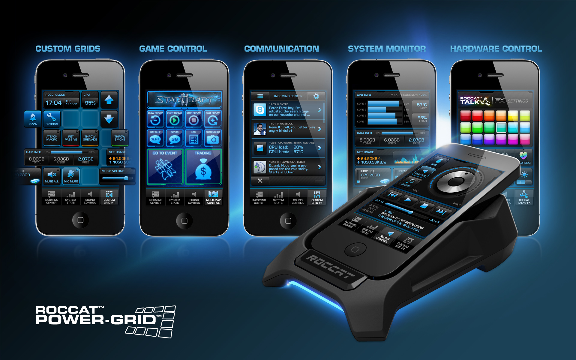 ROCCAT, Hamburger Hersteller professioneller Gaming Peripherie, stellt ab heute Power-Grid zum kostenlosen Download bereit. Die innovative Software besteht aus einer App für iOS sowie Android Smartphones und einer Host-Software für Windows PCs. Mit Hilfe von Power-Grid wird das Smartphone zu einer individuell anpassbaren, leistungsstarken Fernbedienung für den PC. Für den Nutzer bietet sich so erstmals die Möglichkeit, sein Smartphone sinnvoll in seine Gaming-Umgebung zu integrieren. Power-Grid bietet bereits zum Start zahlreiche Grids und Controls, mit denen sich Makros und Shortcuts in Spielen wie Starcraft II und League of Legends ausführen lassen. Power-Grid steuert aber auch nahezu jede andere Software unter Windows, zum Beispiel Word, Photoshop oder den VLC Player. Mit Hilfe der Host-Software ist es jedem Nutzer mit wenigen Mausklicks möglich, seine eigenen, auf seine Wünsche und Bedürfnisse zugeschnittenen Grids und Controls zu erstellen. Auf der neuen Power-Grid Website gibt es zudem eine ständig wachsende Datenbank von Grids und Controls zum Herunterladen. In der Datenbank werden neben von ROCCAT erstellten, auch von der Community entworfene Grids und Controls zu finden sein. Mit Hilfe der Import/Export Funktion in der Host Software ist das Teilen eines eigenen Grids schnell und unkompliziert möglich.