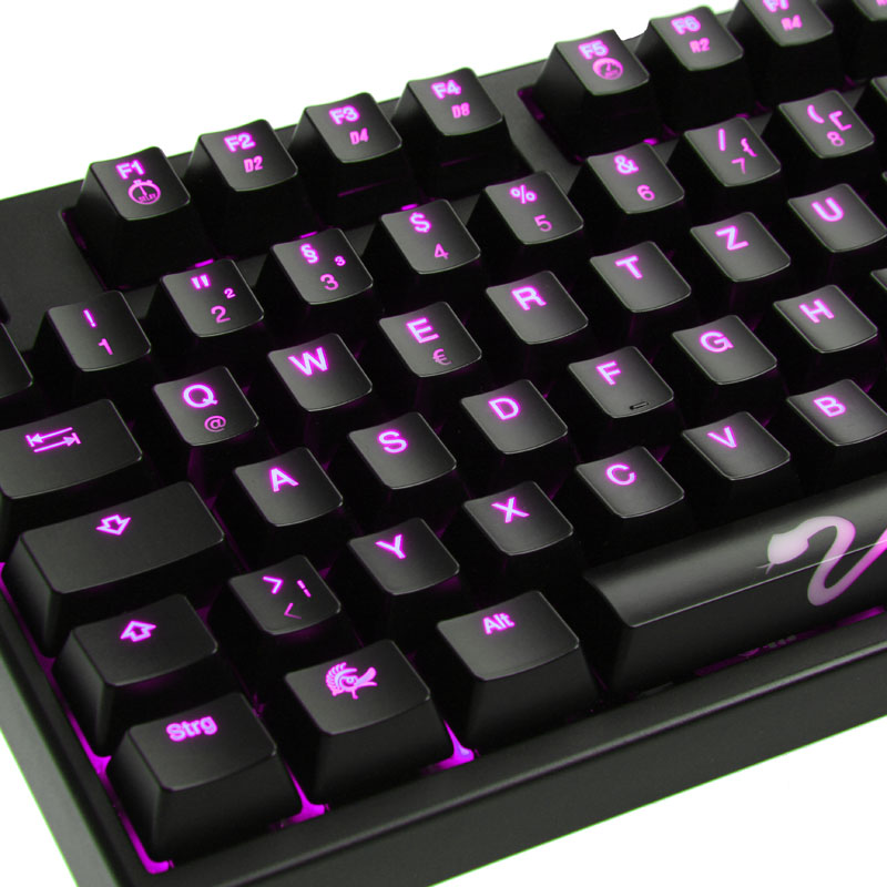 Sowohl die Standard-Version als auch die kompakte, ohne Nummernpad ausgestattete Slim Edition der Ducky Shine 3 erscheint mit Cherry-MX-Switches. Diese sind dann als Brown, Blue, oder Red erhältlich. Also entweder sehr taktile Schalter, die neben einem sehr präzisen Schaltpunkt auch einen spür- und hörbaren (Blue Switches) Klick zurückgeben oder lineare, nicht taktile Schalter, bei denen kein Schaltpunkt überwunden werden muss und die dementsprechend leiser sind –  bestens geeignet für Ego-Shooter.