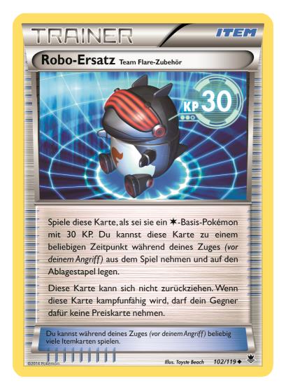 Weiterhin erhält der Spieler sieben Trainerkarten, unter denen sich zwei Mitglieder von Team Flare, Flordelis und Xeros, aufhalten. Zwei spezielle Team Flare-Superzubehör Pokémon-Ausrüstungen können dazu verwendet werden, die Effektivität der Pokémon des Gegners einzuschränken. Es sind die ersten Karten ihrer Art im Pokémon Sammelkartenspiel! Unter Pokemon.de/tcg gibt es mehr Informationen.