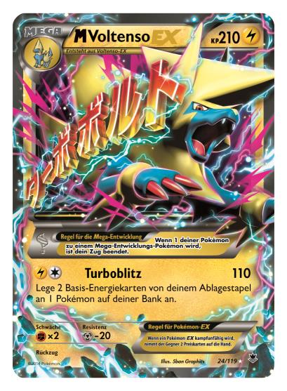 Das Mysteriöse Pokémon Diancie gibt seinen Einstand zusammen mit zwei neuen Mega-Pokémon-EX, Mega-Gengar-EX und Mega-Voltenso-EX, sowie sechs neuen Pokémon-EX-Karten, unter denen sich Gengar-EX, Voltenso-EX, Calamanero-EX, Florges-EX, Dialga-EX und Durengard-EX befinden. Außerdem gibt es vier neue ultraseltene Pokémon-EX-Karten mit überdimensionalen Illustrationen und ein Dialga-EX im neuen Voll-Metall-Design.
