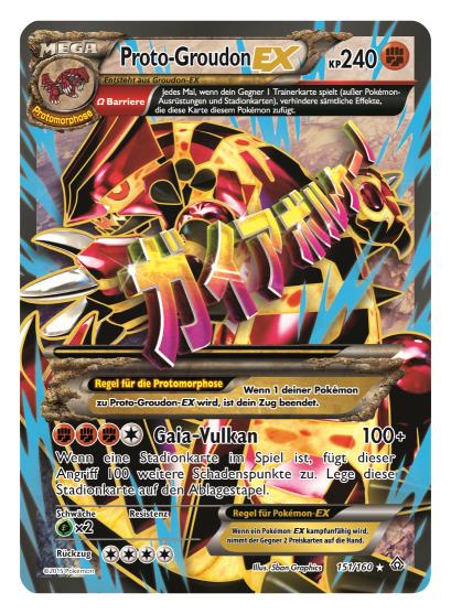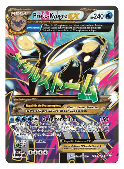 - Die Protomorphose gibt ihr Debut im Sammelkartenspiel: Diese Erweiterung stellt mit Proto-Kyogre-EX und Proto-Groudon-EX die Protomorphose im Sammelkartenspiel vor.