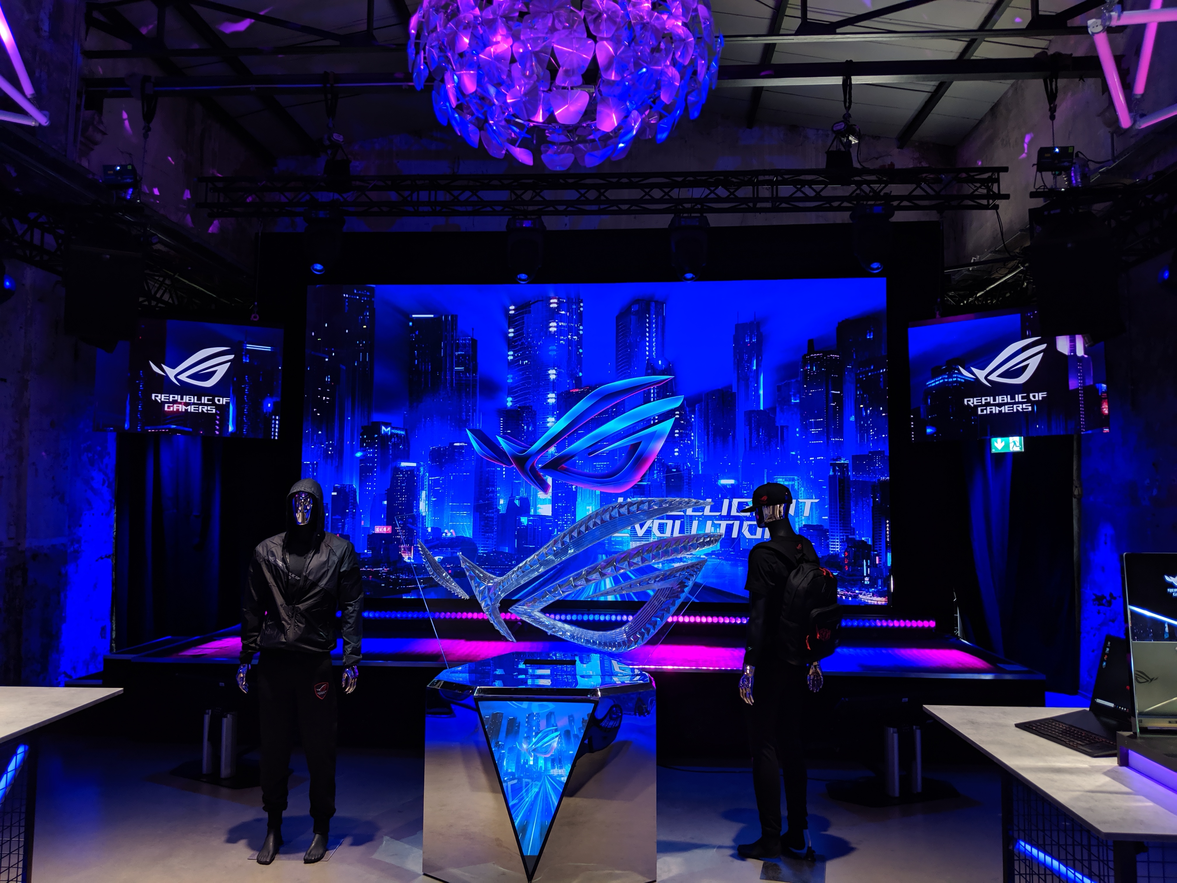 Auch Asus war mit seiner Gaming-Marke Republic of Gamers auf der Gamescom dieses Jahr vertreten. Die Hardware-Ausstellung befand sich nicht direkt auf dem Messegelände, sondern in einem Club etwas außerhalb der Messe. Dort konnten wir einige neue Geräte und interessante Monitore betrachten, die von einem mobilen 17″-Display bis hin zu einem 43″-Gerät.
