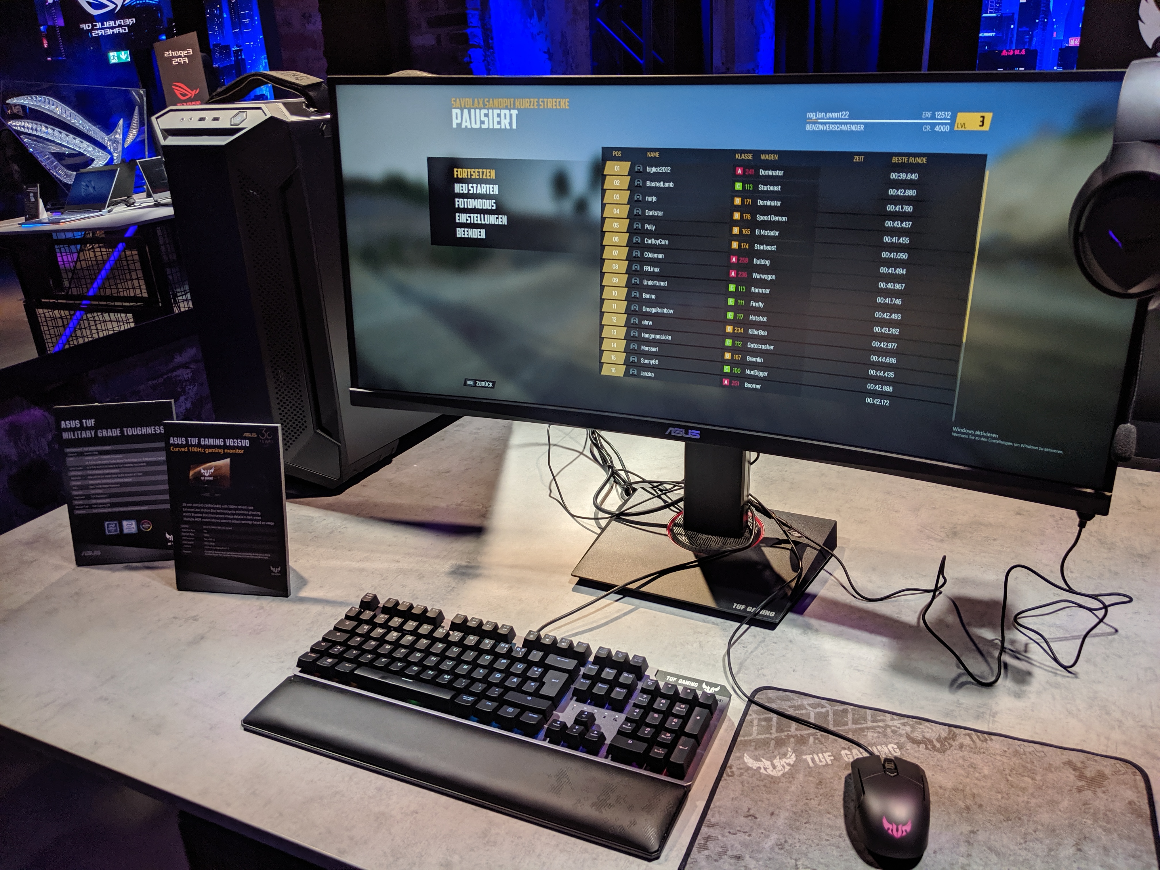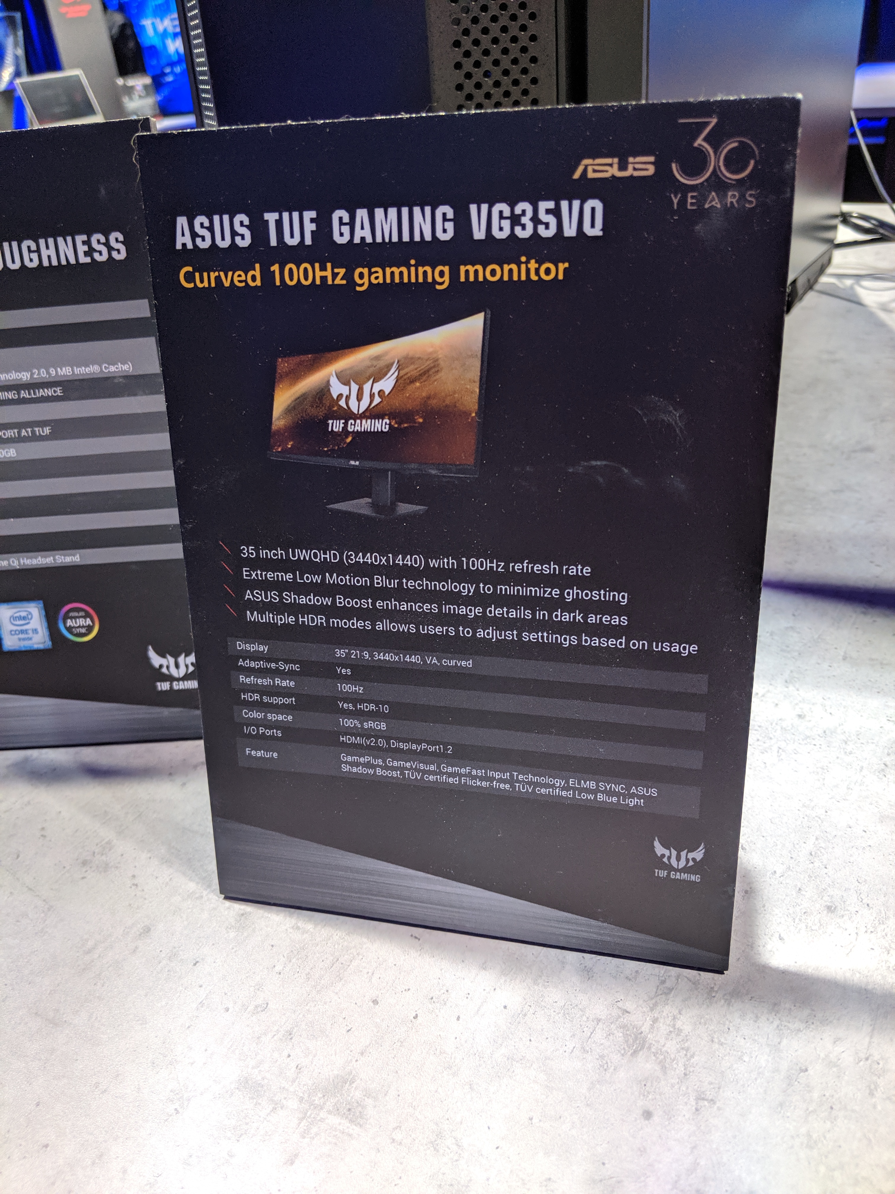 Aber auch bei der Marke TUF (The Ultimate Force) hat sich etwas getan und Asus konnte uns auch hier einen Monitor präsentieren. Der TUF Gaming VG35VQ löst auf seinem gekrümmten VA-Panel mit 3.440 x 1.440 bei 100 Hz auf.