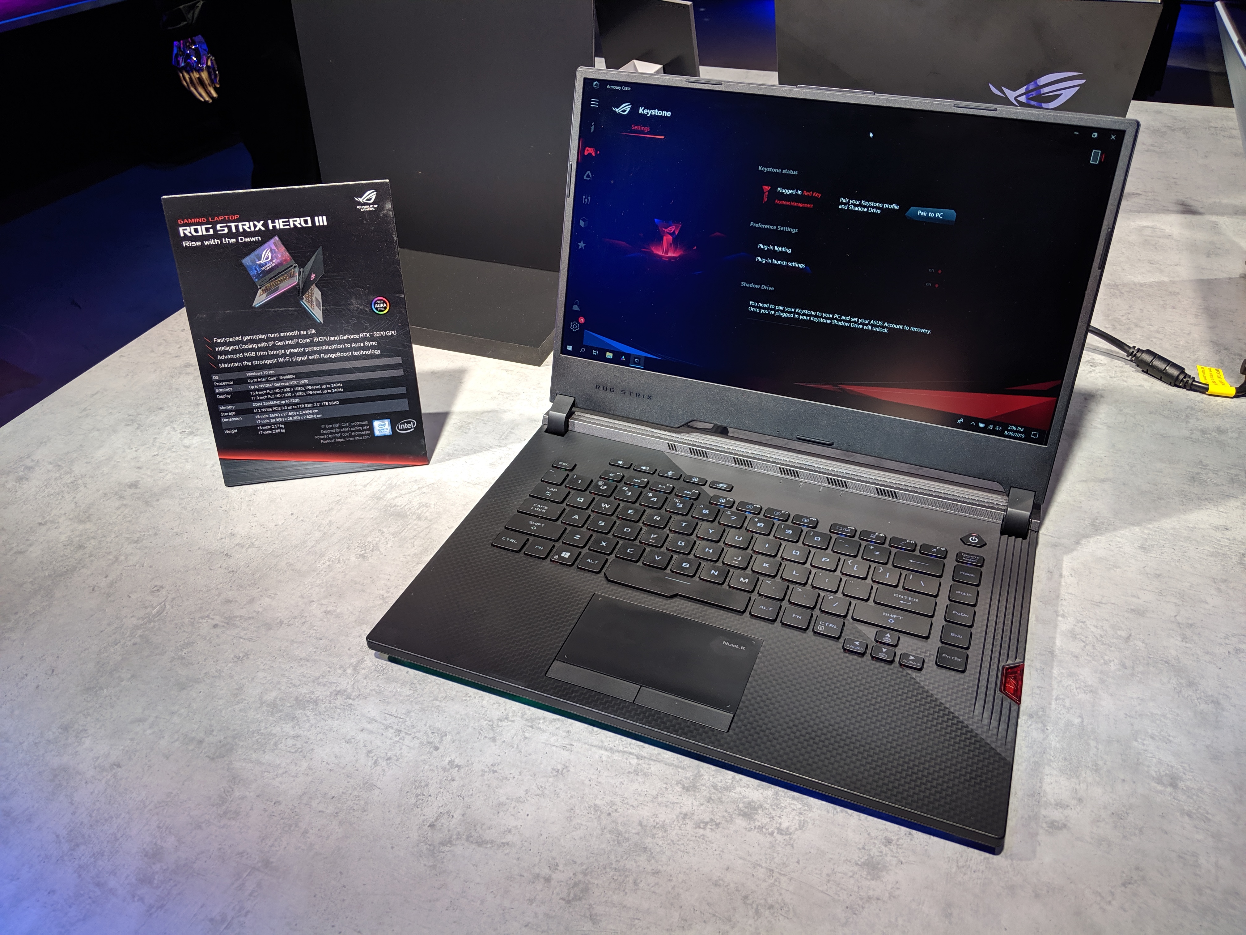 Neben Monitoren konnte Asus uns auch einige Notebooks sowie Accessoires vorstellen. Bei den Notebooks gab es eher wenig Neuheiten. Neben Geräten der Zephyrus-Serie gab es noch das Hero III zu sehen. Alle jeweils mit dem Asus Security Keystone.