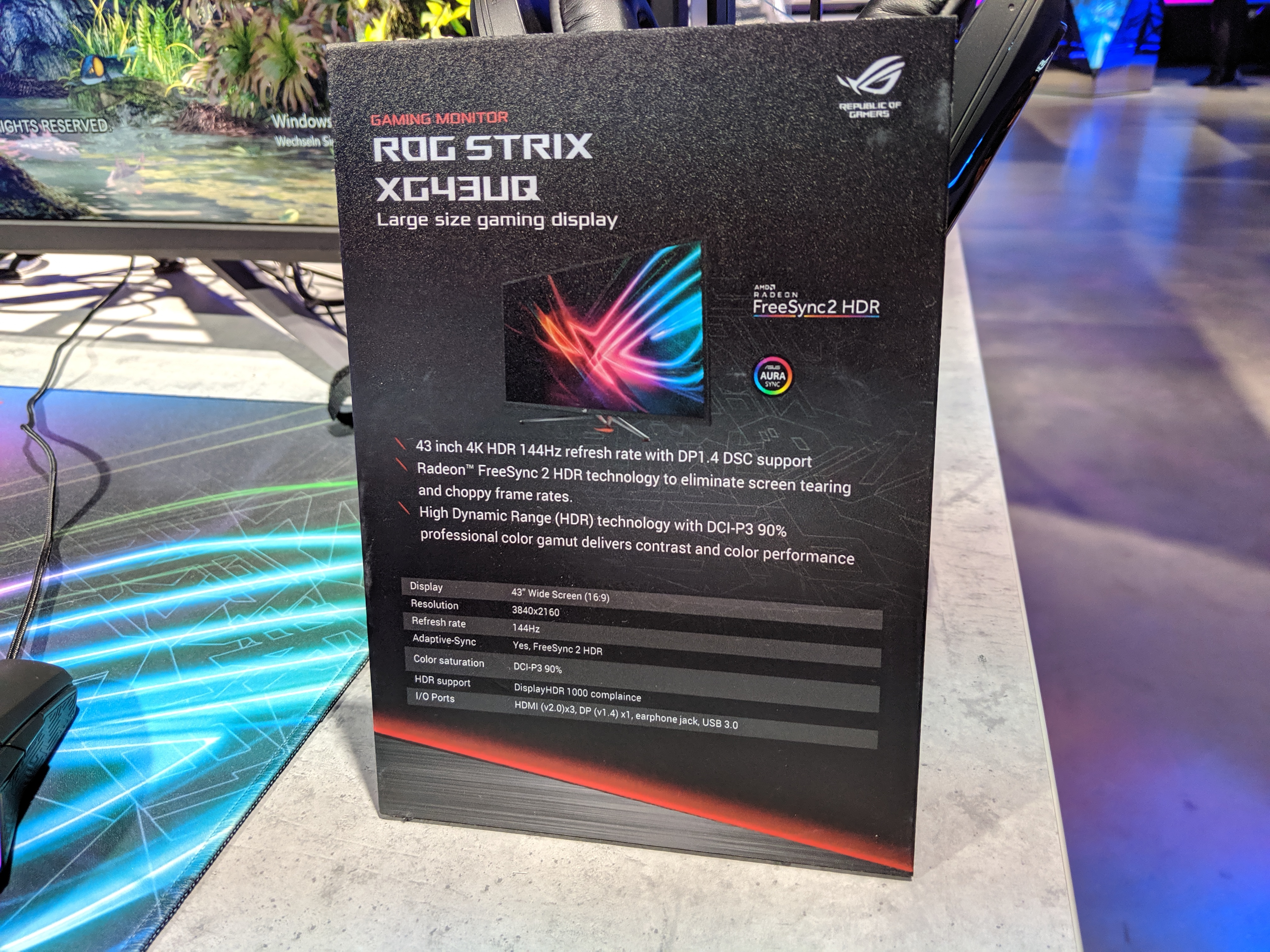 Der Große 43″-Monitor von Asus kommt mit einer 4K UHD-Auflösung sowie 144 Hz auf den Markt. Das VA-Panel unterstützt FreeSync 2 HDR sowie DisplayHDR 1000.