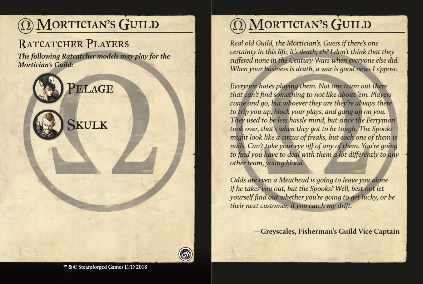 Die Morticians (Bestatter) in Guild Ball sind eine der ältesten Gilden und wurden mit dem Kickstarter gegründet. Also eine Gilde der ersten Stunde. Ihre Spielweise zielt darauf ab, dem Gegner den eigenen Plan nicht einfach aufzuzwingen. Sie unterbinden schlichtweg jegliche andere Taktik, wenn sie es nicht wollen. Es wird exakt so gespielt, wie sie es möchten und Ende der Diskussion. Das machen sie jedoch nicht mittels roher Gewalt, sondern diverser Plays und Traits, welche ein sehr komplexes Spiel ermöglichen. Wie so oft kommt dies zu einem Preis: Der Durchhaltefähigkeit und Resourcenmanagment.