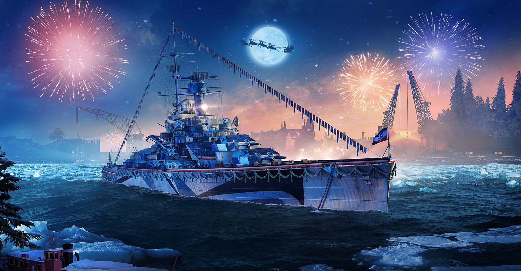 In der Mitte des Monats startet in Warships außerdem das Weihnachtsgerangel, bei dem zwei Teams als Weihnachtsmänner der gegnerischen Pole gegeneinander antreten. Spieler können an dem Event teilnehmen, um sich einen von zwei thematischen Kommandanten zu sichern. Zusätzlich warten außerdem viele andere Preise. Schließlich bieten fünf Gruppen von Kampfmissionen mit dem Titel „Neujahrsschlacht“ den Spielern die Wahl zwischen den Schiffen Dido oder Canarias als Belohnung für den Abschluss dieser Missionen.
