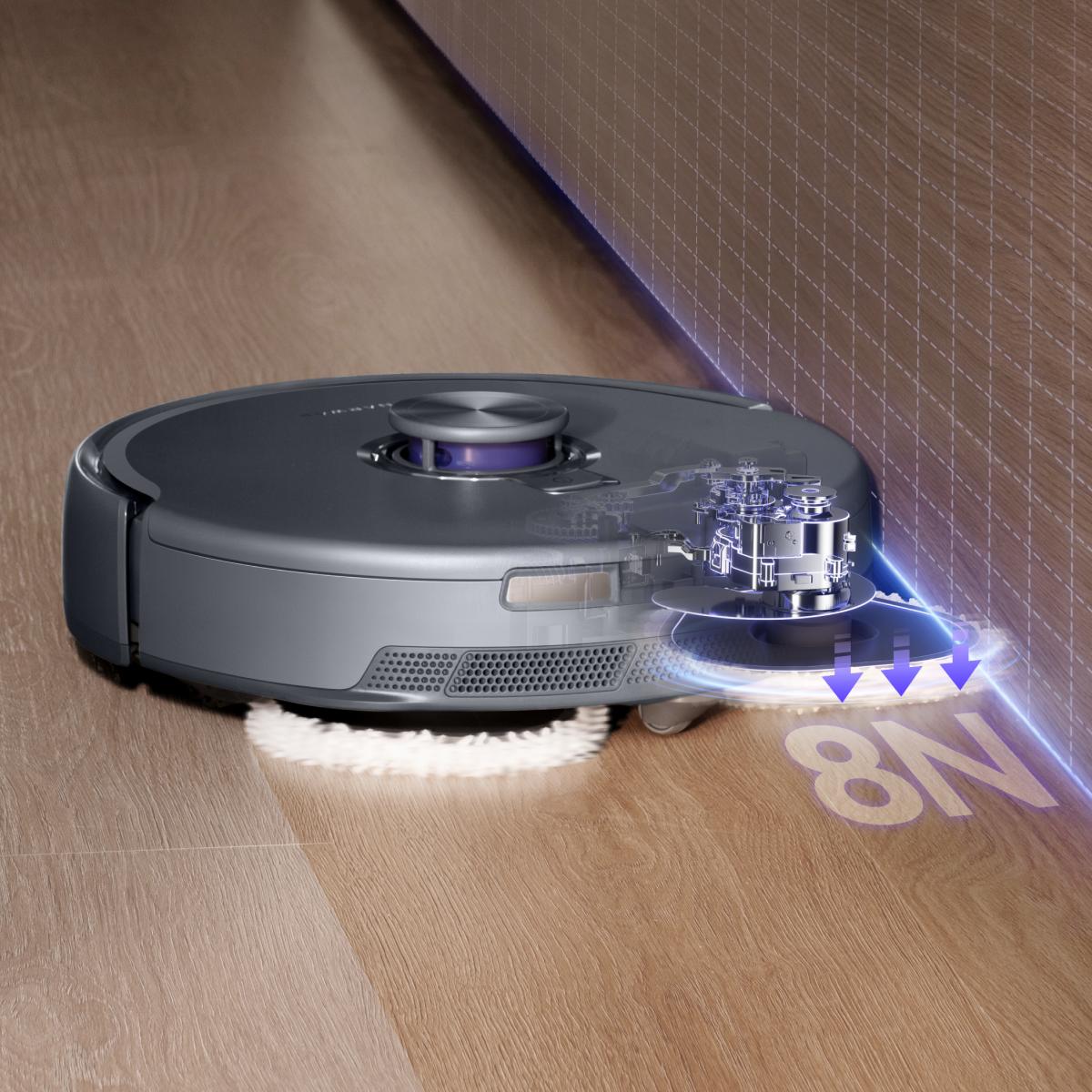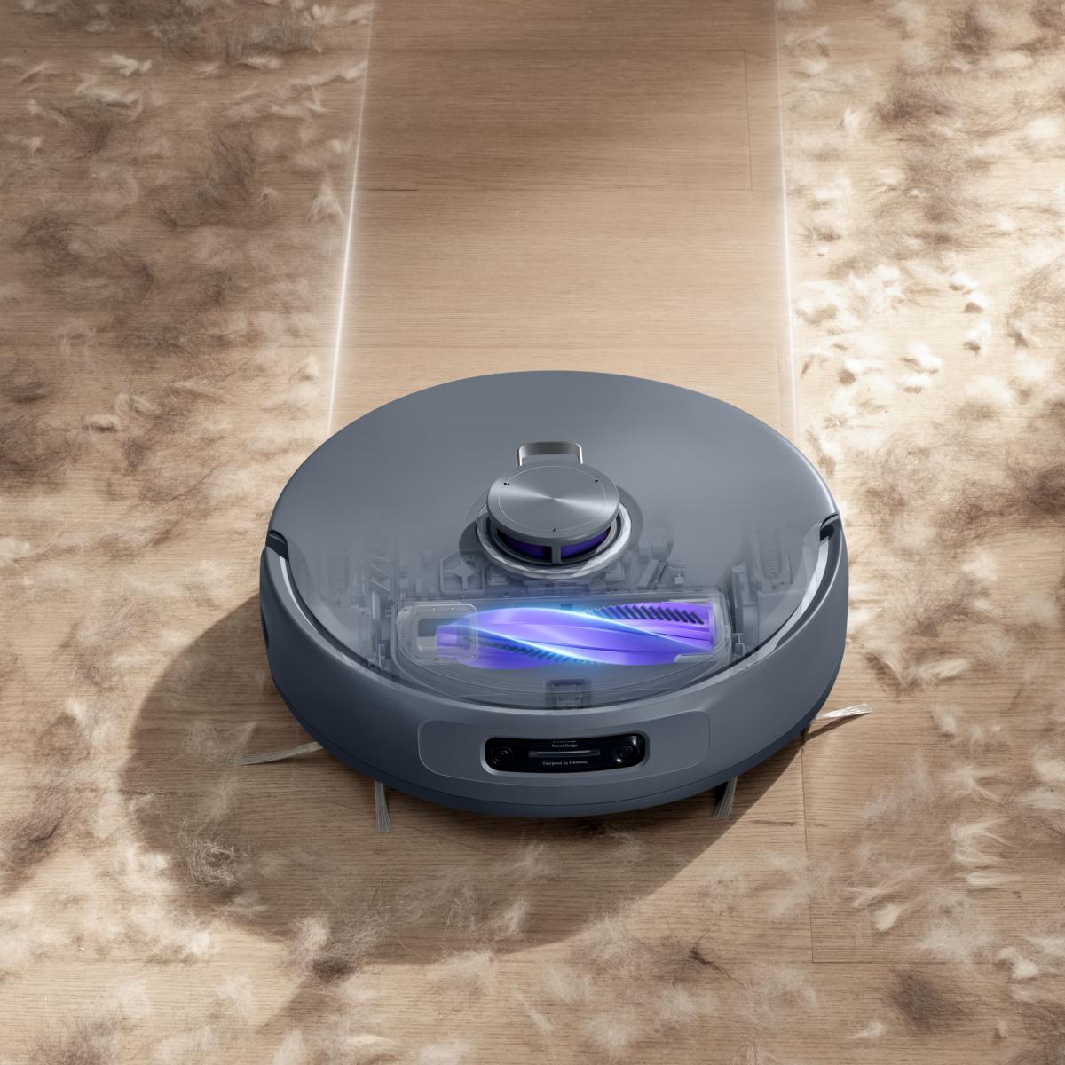 Mit einem maximalen Unterdruck von 18.000 Pa wird er zum wahren Turbo-Sauger. Dank der ausgeklügelten Partikeldetektion und spezieller Sensorik erkennt er selbst kleinste Staubpartikel. Der gesammelte Schmutz wird zum Vermeiden unangenehmer Gerüche vor der Entleerung in der Station zunächst getrocknet. Um auch hartnäckigen Schmutz, wie (Tier-)Haare zuverlässig zu beseitigen, verfügt er über die dynamische Anti-Tangle-Seitenbürste. Diese schwebt über dem Boden und verhindert so ein Verheddern der Haare im System.