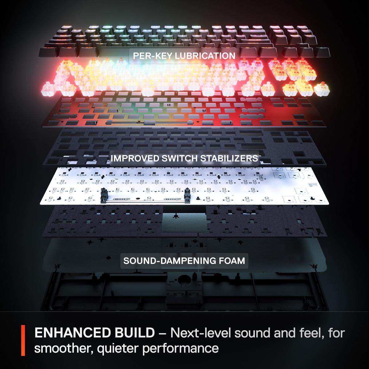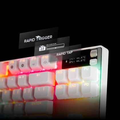 Im besonders stark wachsenden Feld der 60-%-Tastaturen positioniert sich das neue Modell mit seiner kleineren, intelligenteren, schnelleren und stärkeren Silhouette. Durch die kompaktere Bauform findet sie auch auf kleineren Schreibtischen problemlos Platz. Die Tastatur basiert auf den OmniPoint 3.0, den weltweit schnellsten Tastenschaltern mit 40 einstellbaren Auslösestufen von 0,1 mm bis 4,0 mm. Erstklassige Schalterstabilisatoren reduzieren das Tastenwackeln und die werkseitig geschmierten Schalter besitzen ein geschmeidiges Tippgefühl und in Kombination mit dämpfendem Schaumstoff einen dumpferen Klang. Fortschrittliche GG-Softwarefunktionen, wie Rapid Tap, Rapid Trigger und der Protection Mode sowie GG QuickSet vervollständigen die Ausstattung.