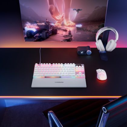 In der Apex-3-Serie gab es bereits ein Modell im TKL-Format, das nun um eine Variante mit weißer Farbgebung ergänzt wird. Die Apex Pro TKL White Gen 3 besitzt alle Features der Apex Pro Mini Gen 3, kommt allerdings im größeren 75-%-Format, auch als Ten-Key-Less-Format (TKL) bezeichnet, daher.