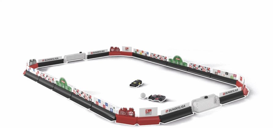 Ob auf dem Tisch oder auf dem Boden, das rasante Duell beginnt mit dem neuen RC Fußball Set Modell Bundesliga. Bereits ausgezeichnet mit dem ToyAward 2025 in der Kategorie SchoolKids, beeindruckt das Set durch seine innovative Kombination aus Racing- und Fußball-Action sowie langanhaltendem Spielspaß. Mit einer speziellen Schaufel am Vorderteil der Autos müssen die Ballkünstler den Ball geschickt ins Tor befördern. Dank eines Clipsystems kann einfach zwischen Profi- und Anfängerschaufel gewechselt werden. Viel Zubehör sorgt für authentisches Fußballfeeling, wobei der Rennspaß ebenfalls nicht zu kurz kommt. Aus 22 Bandenstücken mit reichlich Deko-Elementen im Fußball-Look entsteht im Handumdrehen das eigene heimische Stadion. Das Set enthält außerdem einen Ball, zwei Tore und zwei Mini RC-Bundesliga-Autos in Schwarz und Grau samt Controller. Die Fahrzeuge können dank Original-Bundesliga-Lizenz mit Stickern von 24 Clubs gestaltet werden – darunter alle Bundesligisten sowie beliebte Clubs aus der 2. Bundesliga wie Hertha BSC Berlin, Hamburger HSV, Hannover 96, 1. FC Köln, 1. FC Nürnberg und FC Schalke 04. So wird sofort klar, für welchen Club das Herz der Fans schlägt.