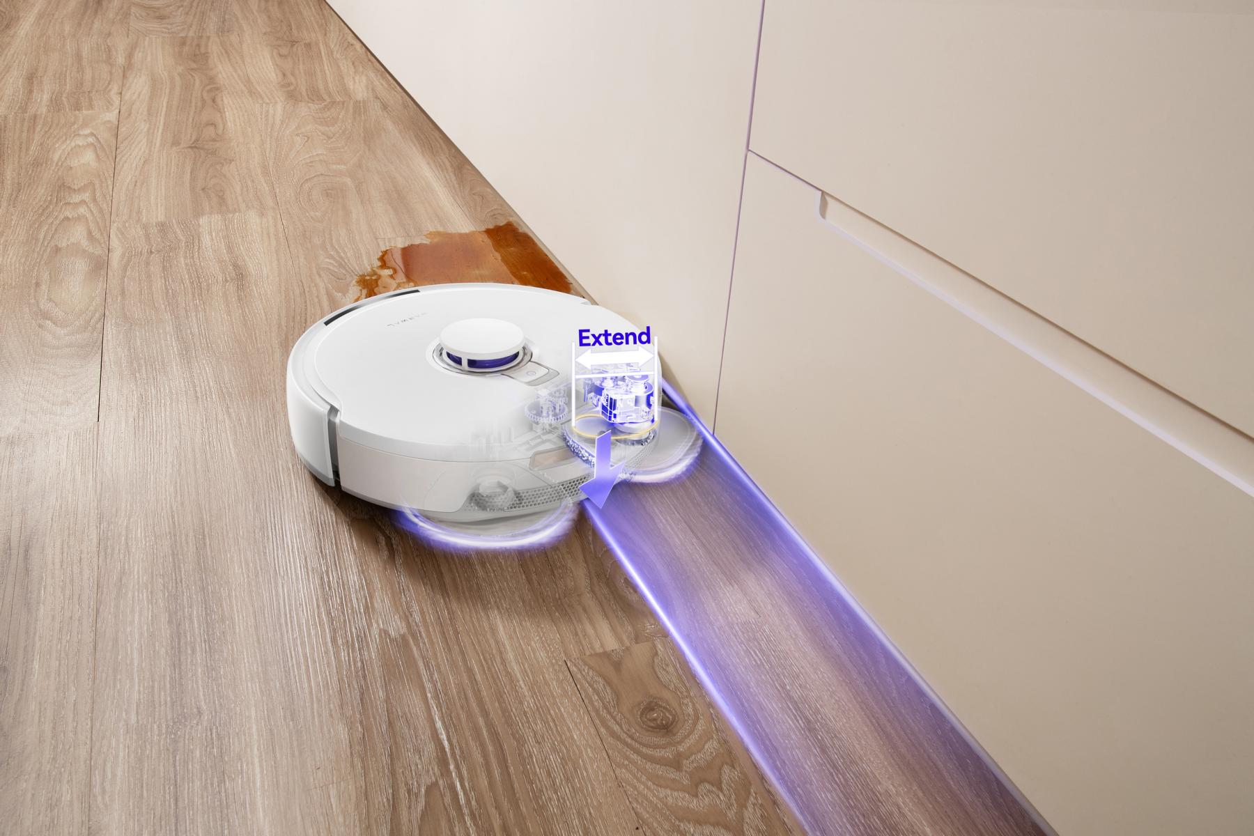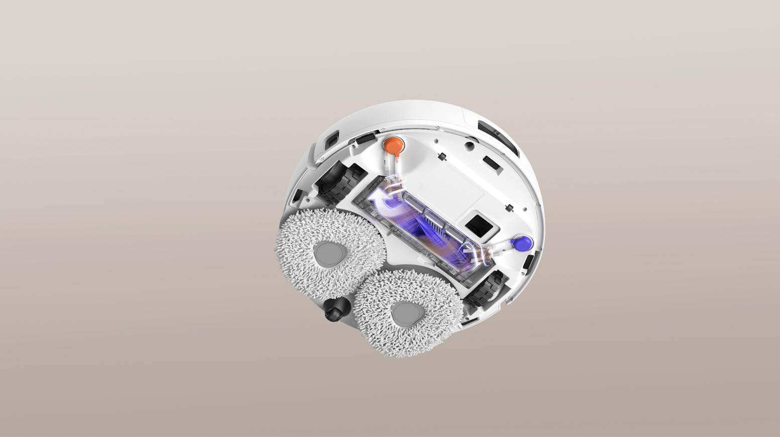 Das dreieckige Mopp-System mit 8 N Anpressdruck und ausfahrbaren Armen ermöglicht eine gründliche Nassreinigung bis in die Ecken. In Kombination mit intelligenter Eckenerkennung werden auch schwer zugängliche Stellen zuverlässig gereinigt, ein klarer Vorteil gegenüber herkömmlichen runden Mopp-Systemen.