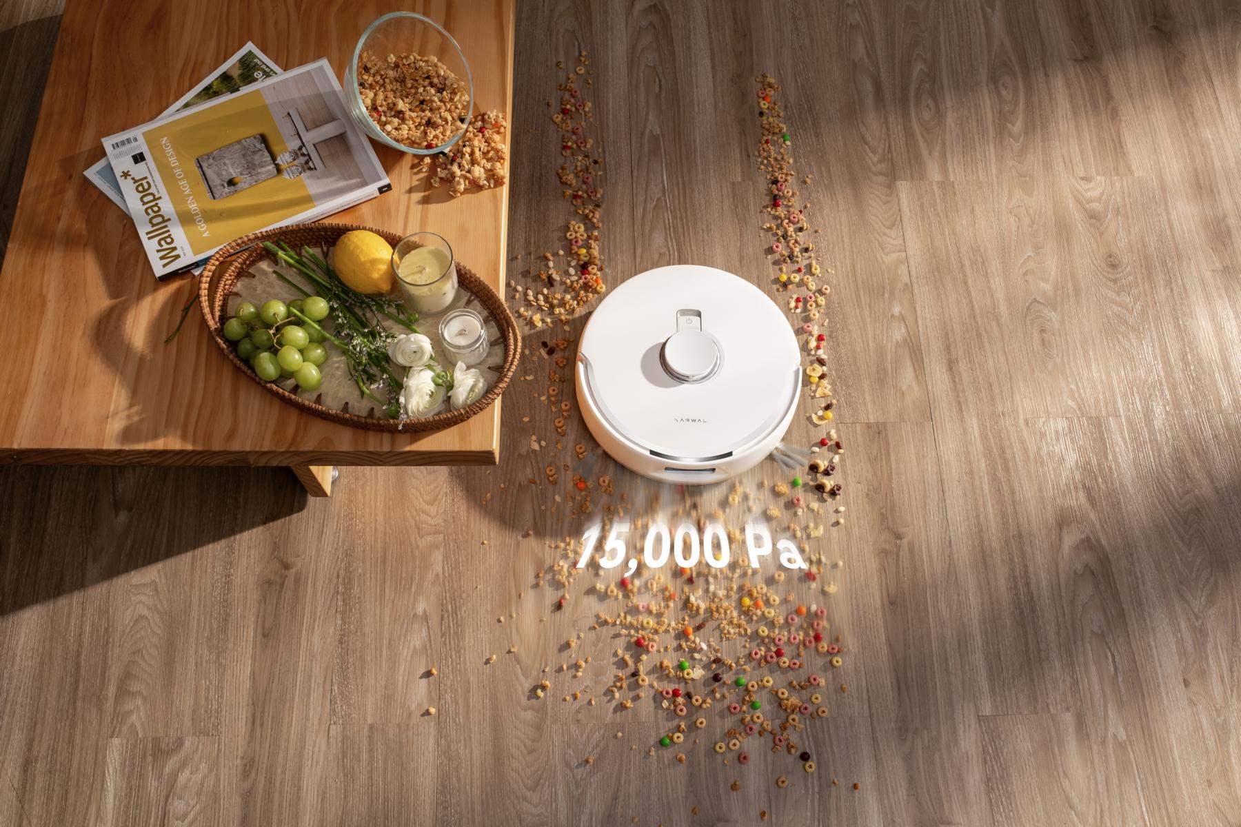 Mit 15.000 Pa zählt der Freo Z10 zu den leistungsstärksten Geräten seiner Klasse. Ob Teppich, Fliesen oder Parkett, der Roboter entfernt zuverlässig Staub, Krümel und Tierhaare.