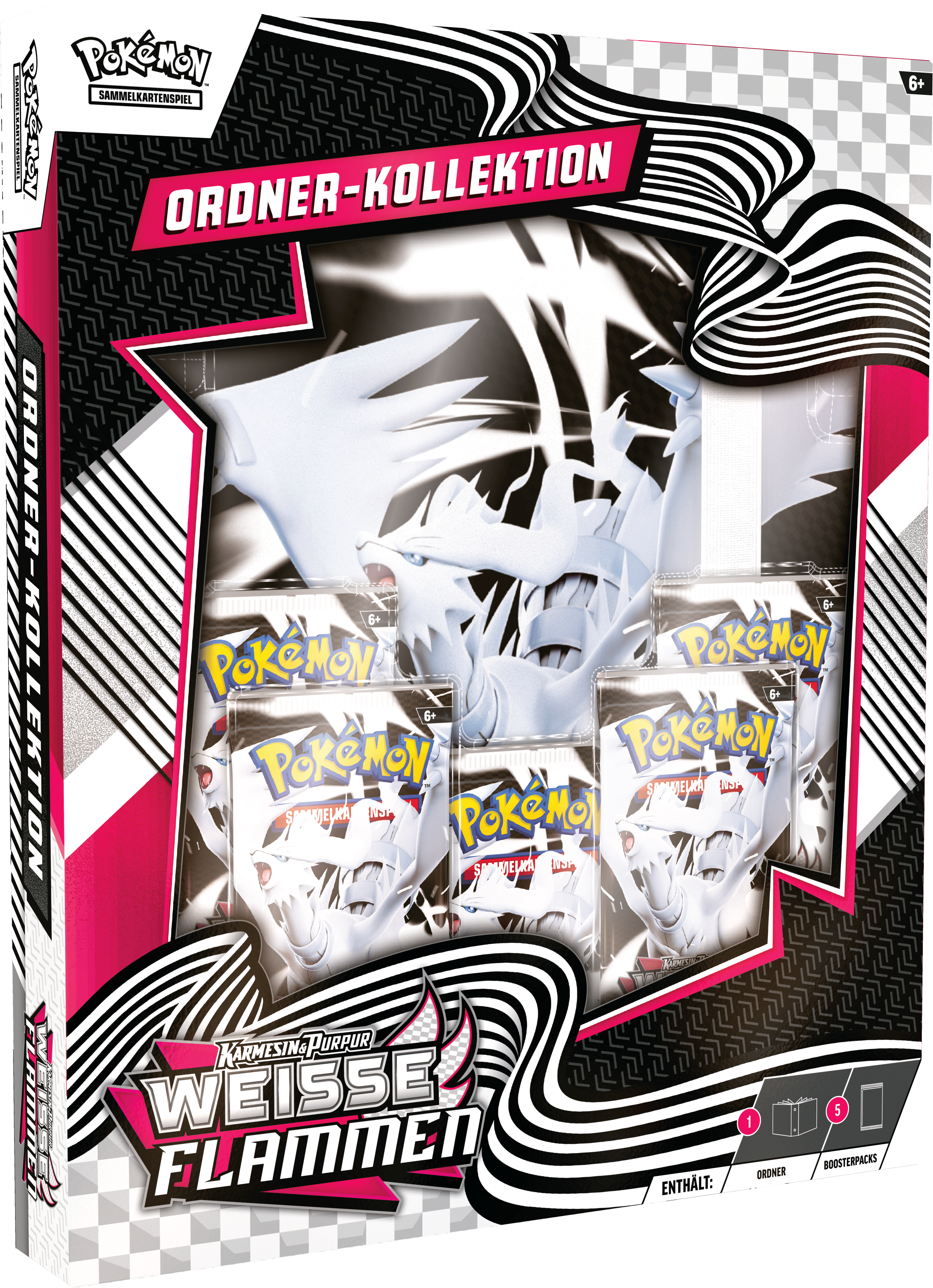• Ordner-Kollektion: 5 Boosterpacks + Zekrom-/Reshiram-Sammelalbum.