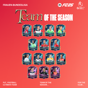 09.05.25: Nach dem Auftakt der Team of the Season (TOTS)-Kampagne am 25. April 2025 geht EA SPORTS FC 25 nun in die nächste Phase – mit drei brandneuen TOTS-Kadern. Ab sofort stehen die besten Spieler:innen der Bundesliga, der Google Pixel Frauen-Bundesliga und der Trendyol Süper Lig im Mittelpunkt.