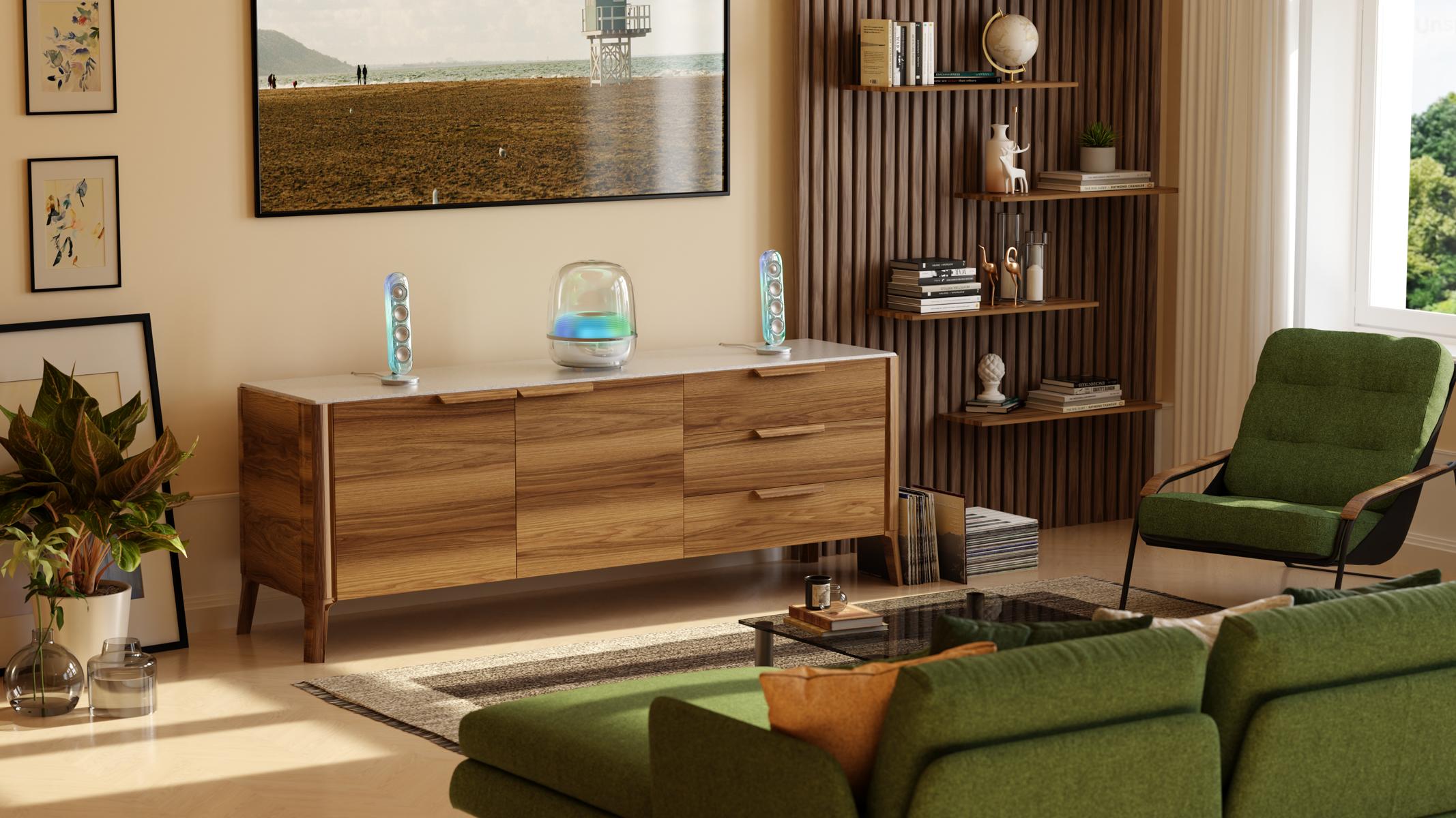 Die neueste Generation der ikonischen Aura-Serie kombiniert ein optimiertes Akustikdesign mit einer mehrschichtigen Lichtinszenierung, die Räume sowohl optisch als auch akustisch in Szene setzt. Ob beim Musikhören, Entspannen oder als stilvolles Wohnaccessoire, der Aura Studio 5 macht jeden Moment intensiver.