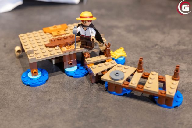 Der Aufbau ist in insgesamt drei Baustufen unterteilt. Die drei mitgelieferten Figuren sind dabei auf die Baustufen aufgeteilt. Im ersten Bauabschnitt findet man die Figur von Shanks und baut die Unterkonstruktion der Bar auf. Bei Shanks kann man sich überlegen, ob man ihm den Hut aufsetzen oder ihm Haare verleihen möchte.
