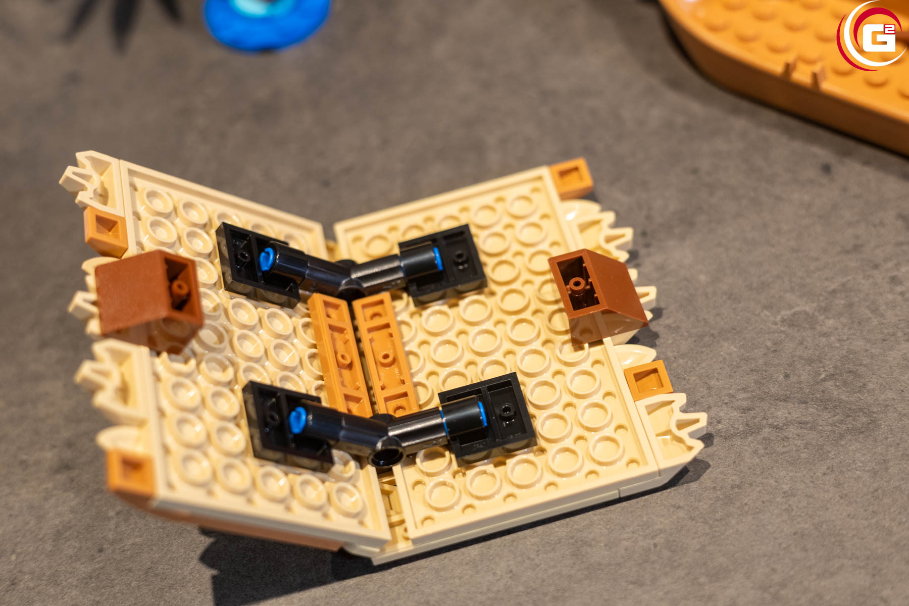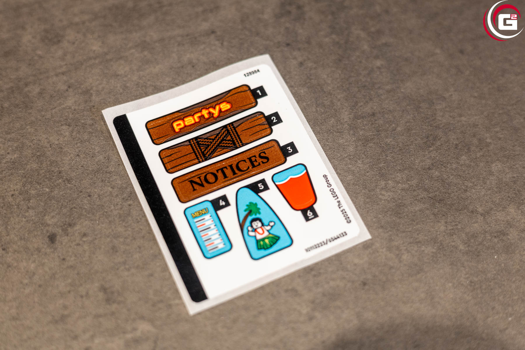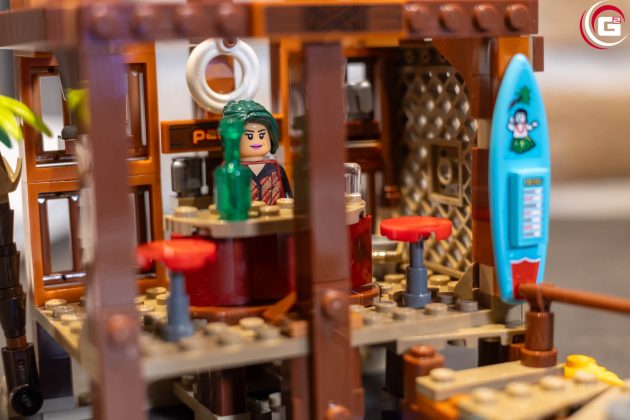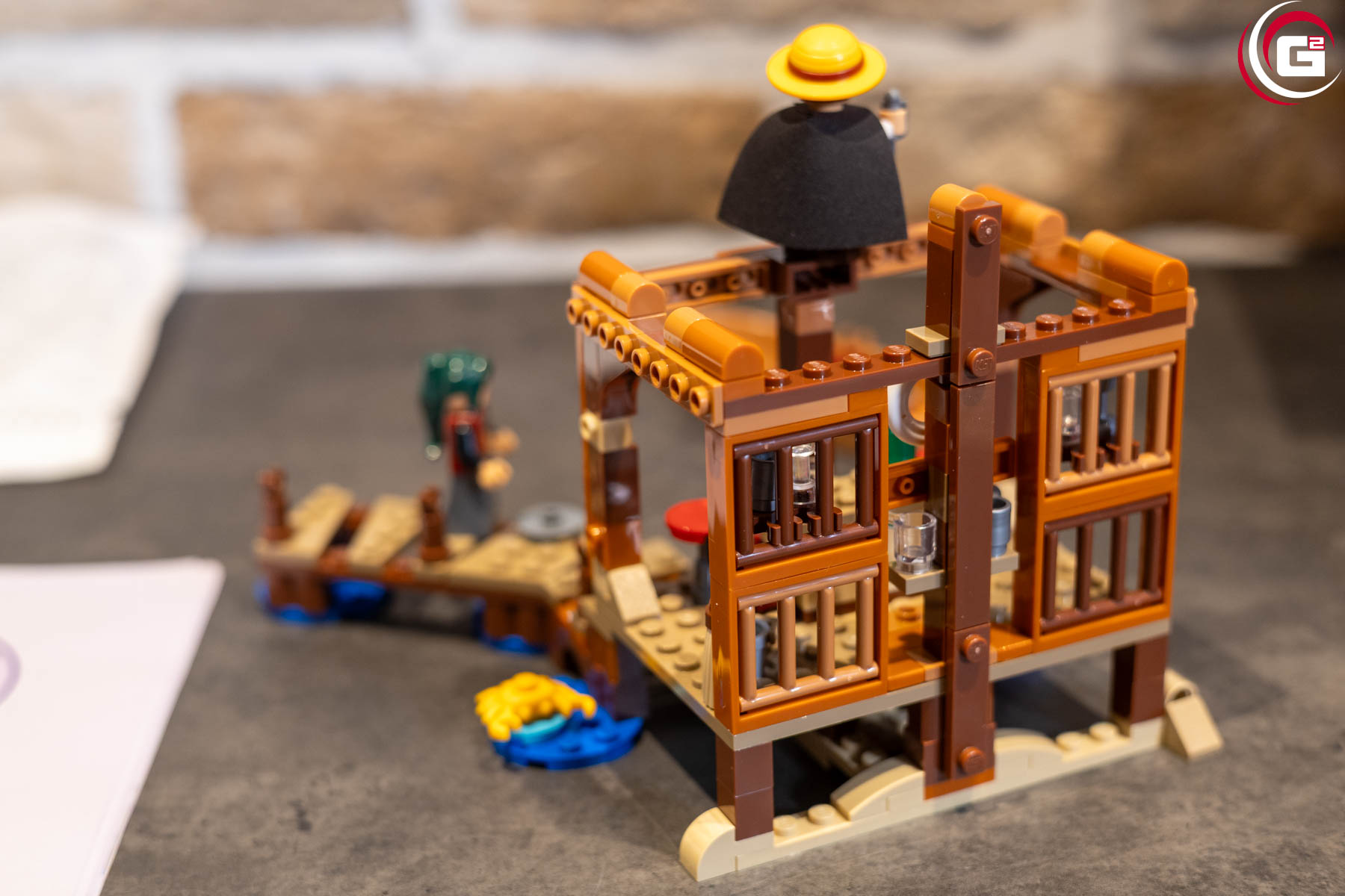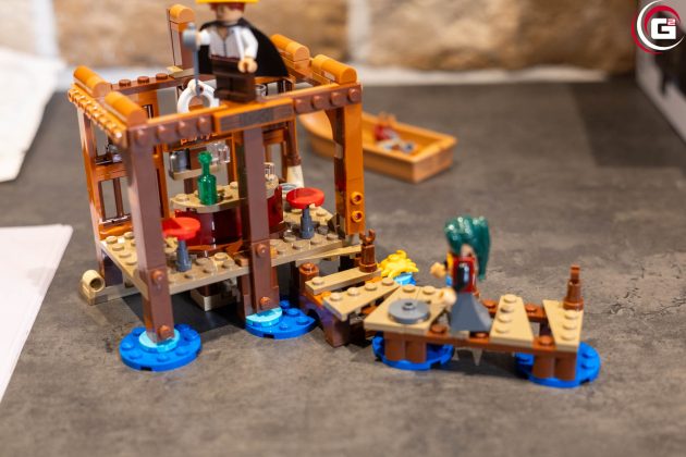 Die Qualität der Bausteine und die Passgenauigkeit sind hervorragend, so wie man es von LEGO gewohnt ist. Das Set überträgt die Gestaltung von Partys Bar sehr schön in die verspielte Welt von LEGO. Natürlich muss man hierbei ein paar Abstriche mit Blick auf den Maßstab und einigen Details machen, aber die Bar und das Boot, so wie sie in Folge 1 der Live-Action-Serie etwa ab Minute 20 zu sehen sind, erkennt man hier sehr gut wieder. In die alte Sticker-Diskussion wollen wir hier gar nicht so tief einsteigen. Die enthaltenen Sticker sind sauber gefertigt und lassen sich gut platzieren, optisch stellen sie keine schlechtere Lösung dar.
