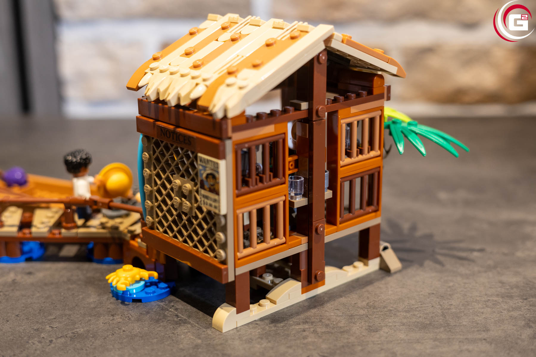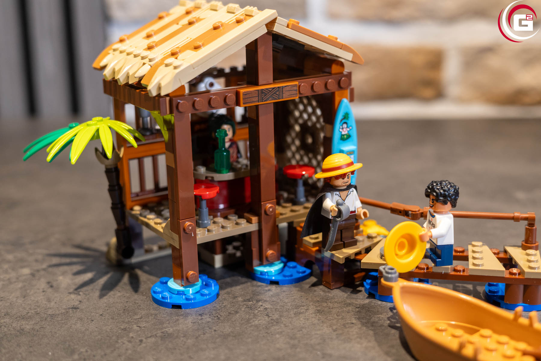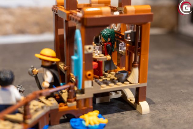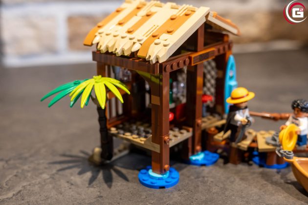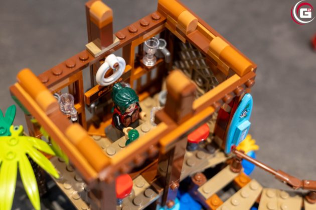 Das Set LEGO ONE PIECE 75636 – Hütte im Windmühlendorf ist nicht grundsätzlich als Sammlermodell konzipiert, sondern soll Kinder zum Spielen einladen. Das ist hier sehr gut gelungen, denn durch das leicht abnehmbare Dach und die abnehmbare Seitenwand hat man einen sehr guten Zugriff auf die Einrichtung. Mit der Einrichtung aus Tresen, Hockern sowie vielen Bechern und Gläsern kann man in Partys Bar so manche Piratenparty nachspielen. Das Ruderboot und der Steg runden das Set gut ab.