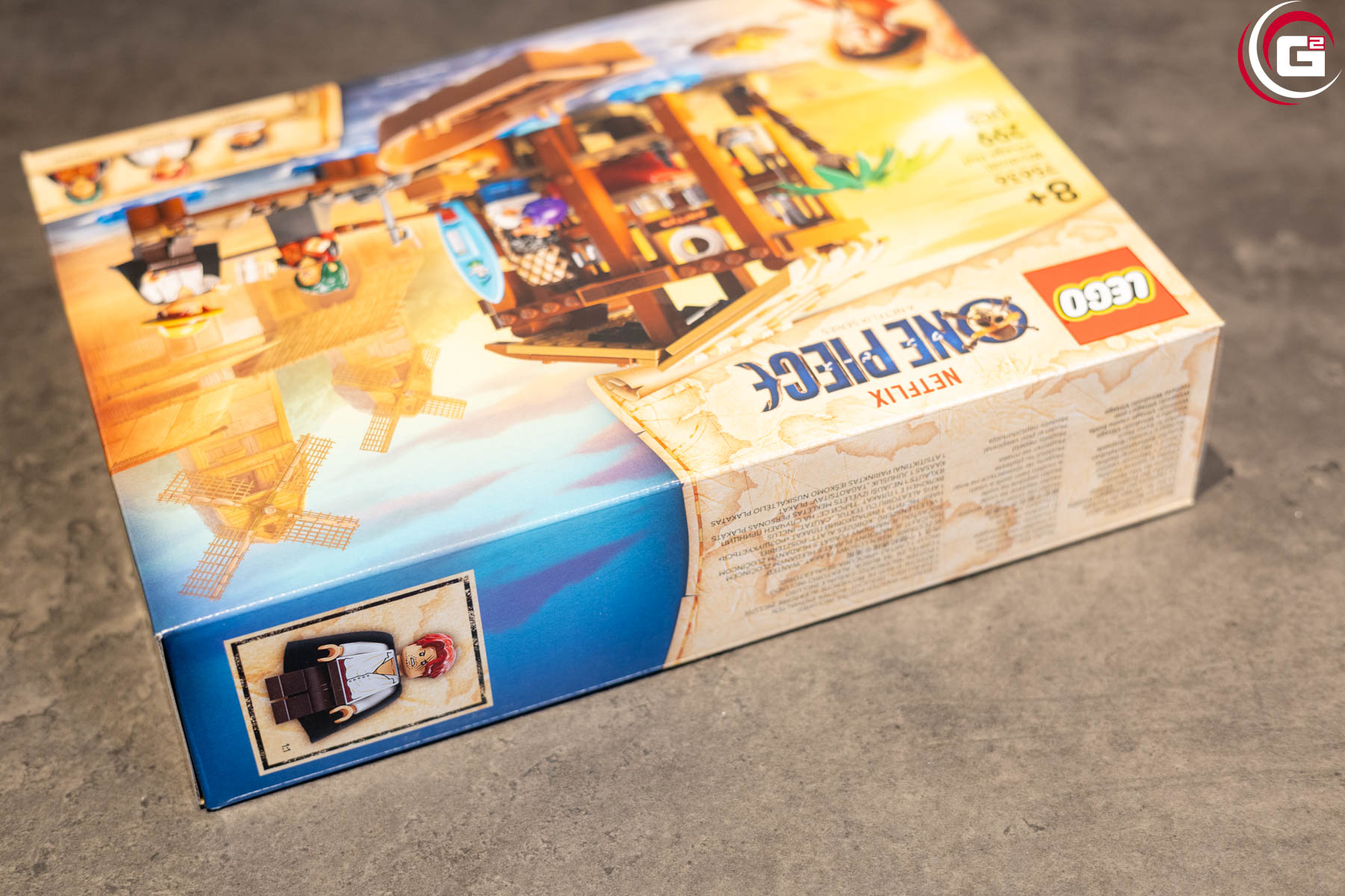 Wie üblich hat LEGO auch der One-Piece-Serie ein eigenes Design für die Umverpackungen verliehen. Hier wird ein Bild des LEGO-Modells mit einer zeichnerischen Darstellung zum Bild auf der Vorderseite verbunden. Die Rückseite zeigt entsprechend die Rückseite des Modells und Detaildarstellungen zu den abnehmbaren Elementen.