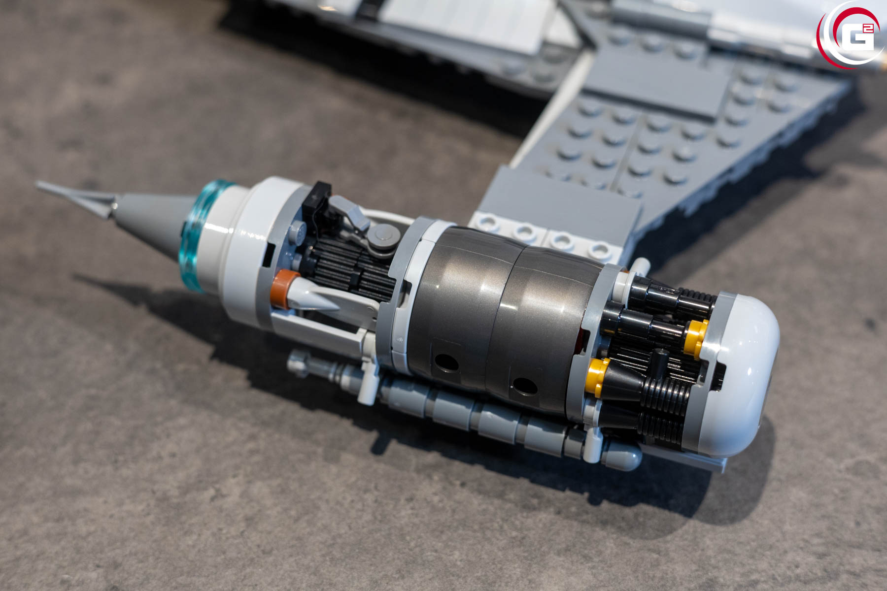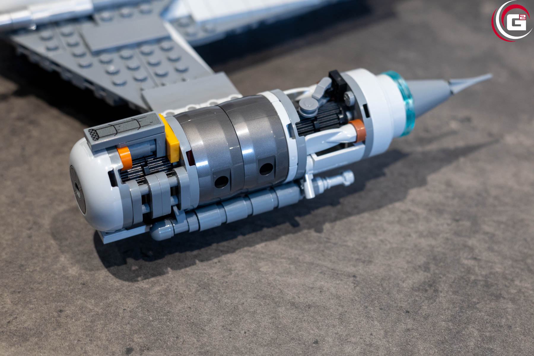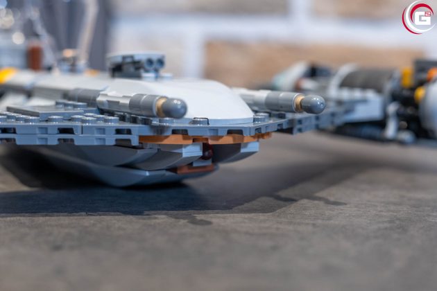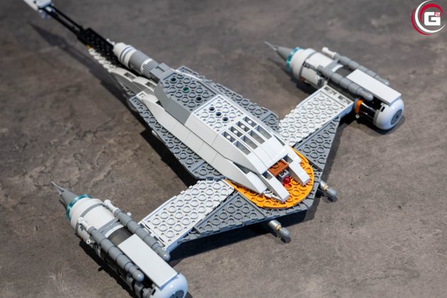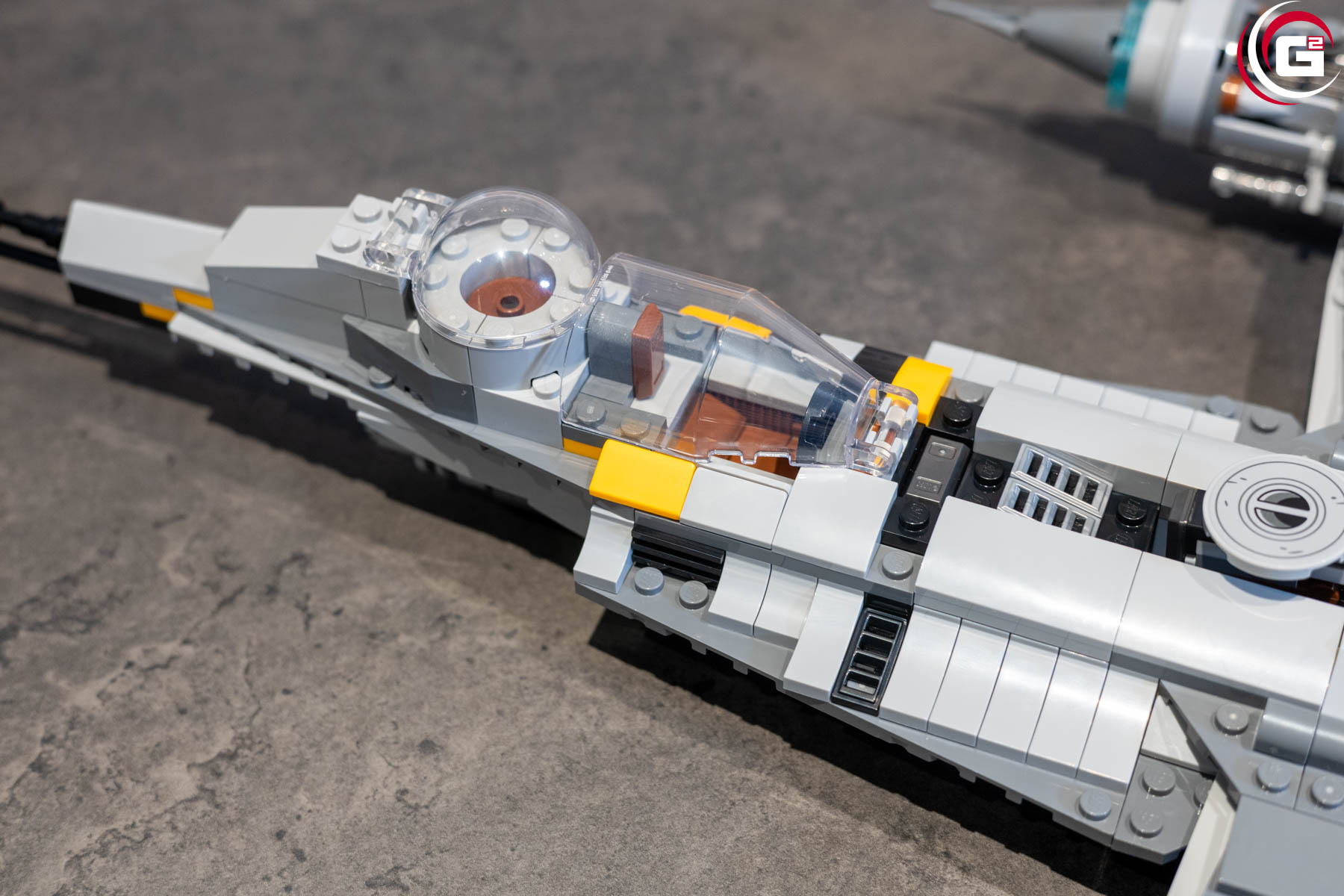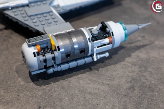 Auch das Set LEGO Star Wars 75325 – Der N-1 Starfighter des Mandalorianers verfügt wieder über einige interaktive Details. So lassen sich die beiden Cockpits öffnen und schließen, sodass Mando und Grogu im Fighter Platz nehmen können. Das Raketenpack von Mando kann man in einem versteckten Laderaum verstauen. Ein tolles Feature ist auch der Shooter mit Federmechanismus. Die „Laserprojektile“ steckt man dort einfach ein und dann kann man auf der Oberseite drücken und die Projektile werden abgeschossen. Die Kraft ist überraschend groß und man kann problemlos zwei Meter weit schießen. Hier sollte man tatsächlich aus nächster Nähe mit den Augen vorsichtig sein.