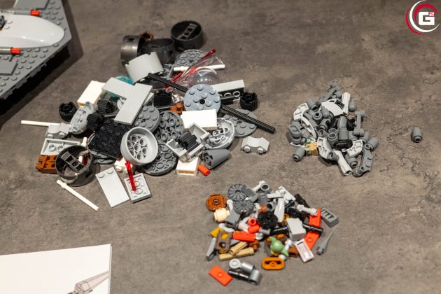 Im zweiten und schon letzten Abschnitt finden wir die Figuren von Peli, Grogu und den Droiden. Der Starfighter erhält nun abschließend die Cockpit-Verkleidungen und auch seine Triebwerke.