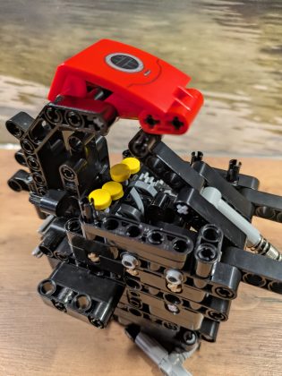 CaDA hat sich in den letzten Jahren enorm weiterentwickelt, und das merkt man diesem Set deutlich an. Die Teilequalität ist fast auf einem sehr hohen Niveau: präzise, sauber gegossen und angenehm passgenau. Dennoch sind leichte Gussreste („Gate Marks“) auf den roten Teilen sichtbar, ein kleiner Schönheitsfehler, der bei genauer Betrachtung auffällt. Einige Achsen sind zudem minimal zu lang und ragen sichtbar hervor. Diese kleinen Unsauberkeiten trüben den Gesamteindruck aber nur geringfügig, denn der Rest stimmt: Die Verbindungspunkte halten stabil, das Material wirkt hochwertig, und die Mechaniken laufen flüssig. Besonders beeindruckend ist die Stabilität des fertigen Modells, es steht sicher auf seinem mitgelieferten Präsentationsständer, der zusätzlich eine kleine, stilvolle Namensplakette trägt.