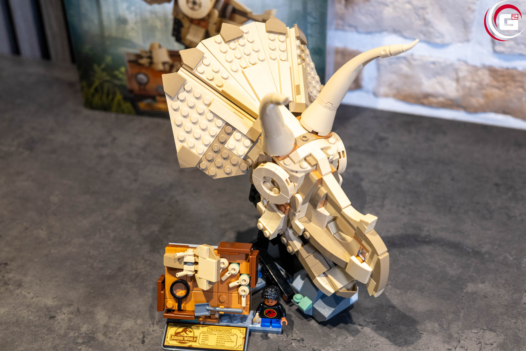Das Set LEGO Jurassic World 76969 – Dinosaurier-Fossilien: Triceratops-Schädel ist ein sehr gelungenes und detailliertes Modell eines Dinosaurier-Schädels. Es ist ein reines Deko-Modell ohne wirklichen Spielwert, was die Umverpackung aber bereits deutlich macht. So ist es aber auch eine sehr schöne Ergänzung für die Sammlungen kleiner und großer Dinosaurier-Fans. Der UVP beläuft sich auf 44,99 €, aktuell (Stand: 19.10.2025) ist das Set etwa um die 31 € zu bekommen. Verglichen mit anderen Deko-Modellen in derselben Größenordnung ein gutes Preis-Leistungs-Verhältnis.