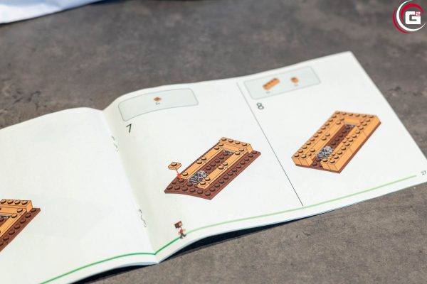 In der beiliegenden Bauanleitung wird der Aufbau des Sets LEGO Minecraft 21259 – Die Piratenschiffreise sehr detailliert dargestellt und kleinschrittig beschrieben. Darüber hinaus kann man auch auf die LEGO-Builder-App (iOS und Android) zurückgreifen. Hier finden sich noch detaillierte Anleitungen, in denen man auch jede Ansicht beliebig drehen kann.