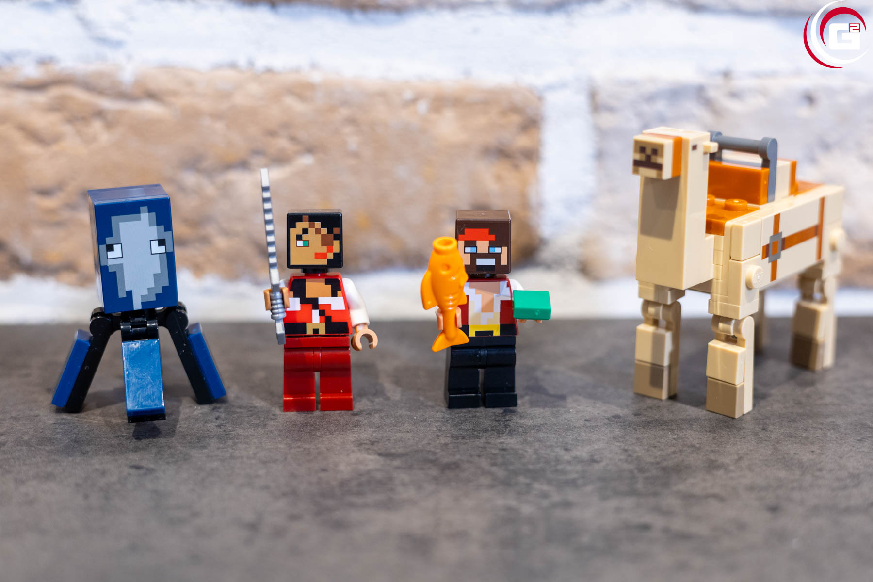 Beide Piratenfiguren sind detailliert gestaltet, mit einem Fisch und einem Schwert können wir auch beiden etwas in die Hand geben. Als Baufigur gibt es einen Oktopus mit beweglichen Beinen und ein Dromedar, das sich dank der beweglichen Beine auch Hinlegen kann.