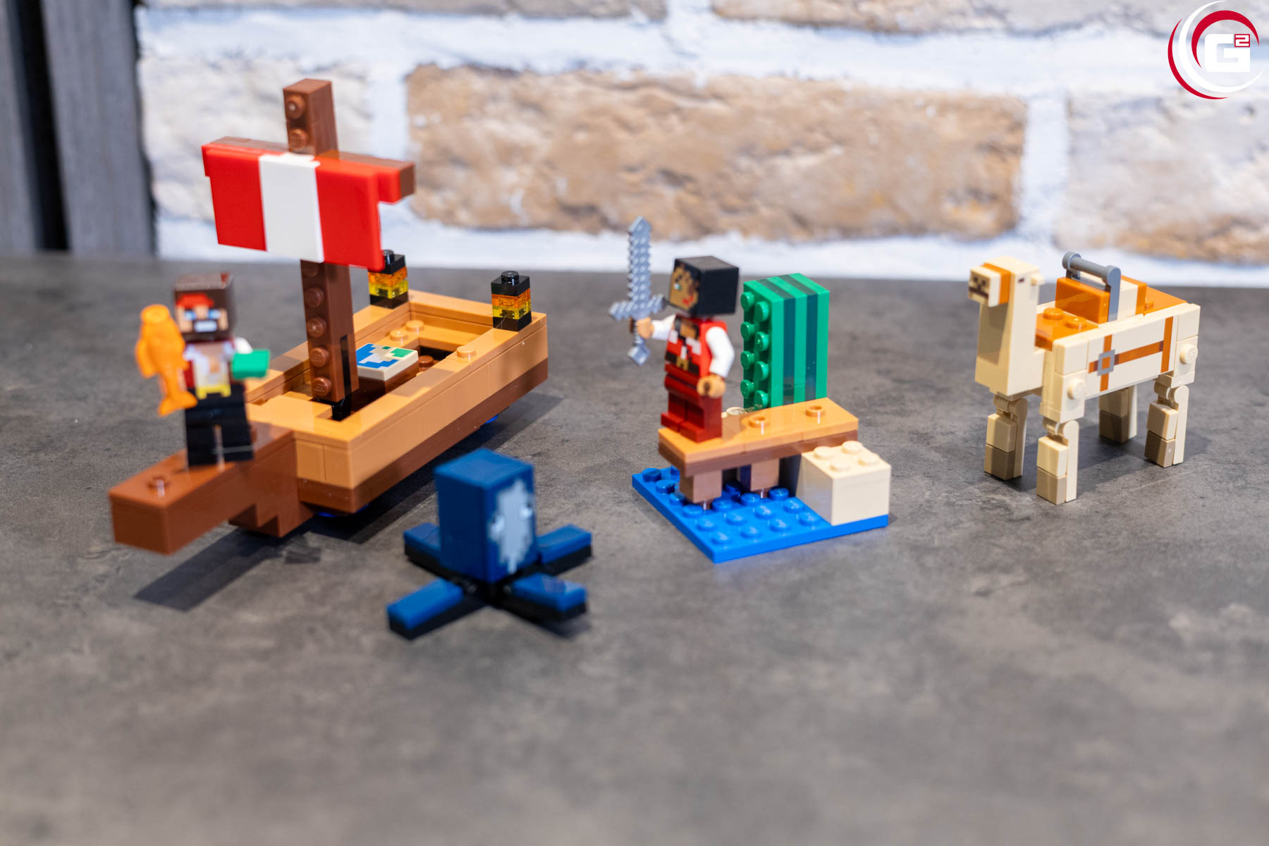 Es muss nicht immer ein großes Set sein, dieses kleine LEGO-Minecraft-Set bietet auch schon einiges an Inhalt. Kleine Entdecker finden hier ein Schiff, ein Dromedar und einen Tintenfisch sowie zwei Piratenfiguren. Das Dromedar besitzt bewegliche Beine und hat für beide Figuren je einen Sattel parat. Auch an Board des Schiffs finden beide Figuren Halt.