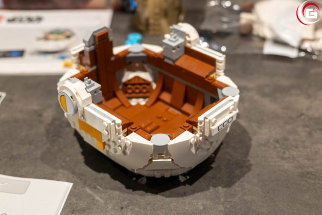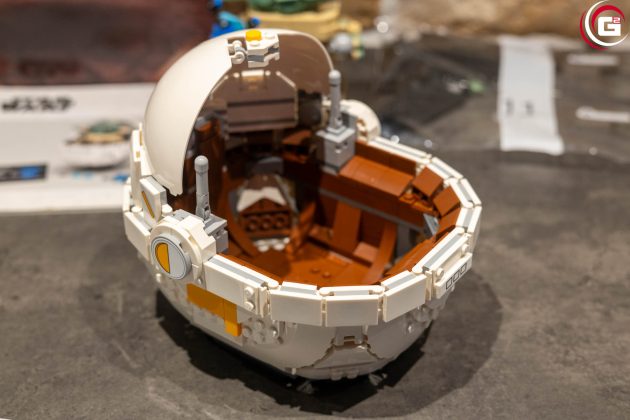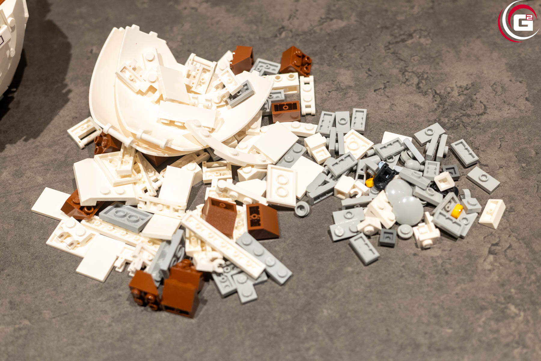 Dass bei LEGO Punkte, wie die Qualität der Bausteine, die Passgenauigkeit und auch die Farbgebung auf sehr hohem Niveau sind, ist hinlänglich bekannt. Der Sitz der Steine ist zuverlässig, stellenweise brauchen jüngere Kinder etwas Hilfe beim richtigen Festdrücken. Das Modell ist überraschend massiv und hat eine schöne Größe. Es kommen sowohl bedruckte Steine, als auch Aufkleber zum Einsatz. Bei der Repulsorwiege gelingt es LEGO durch eine gute Kombination von Scharnierelementen, sowie runden, abgeschrägten und glatten Bausteinen die kugelförmige Struktur detailliert abzubilden.