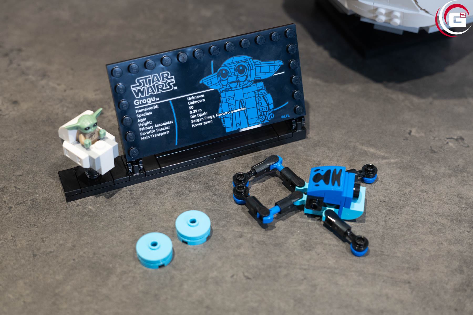 Die letzte Baustufe beinhaltet den Modellständer und einen Displayständer mit einigen Details zu Grogu.