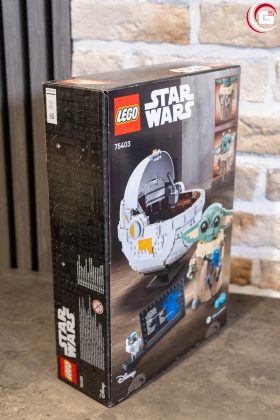 Das Set LEGO Star Wars 75403 – Grogu™ in seiner Repulsorwiege besitzt eine besonders ansprechende Umverpackung im charakteristischen LEGO-Star-Wars-Design. Auf der Vorderseite wird das enthaltene LEGO-Modell fliegend mit seiner Repulsorwiege vor einem animierten Hintergrundbild von Tatooine gezeigt. Auf der Rückseite wird er neben der Repulsorwiege stehend gezeigt, zudem wird auch dargestellt welche Interaktionen möglich sind.