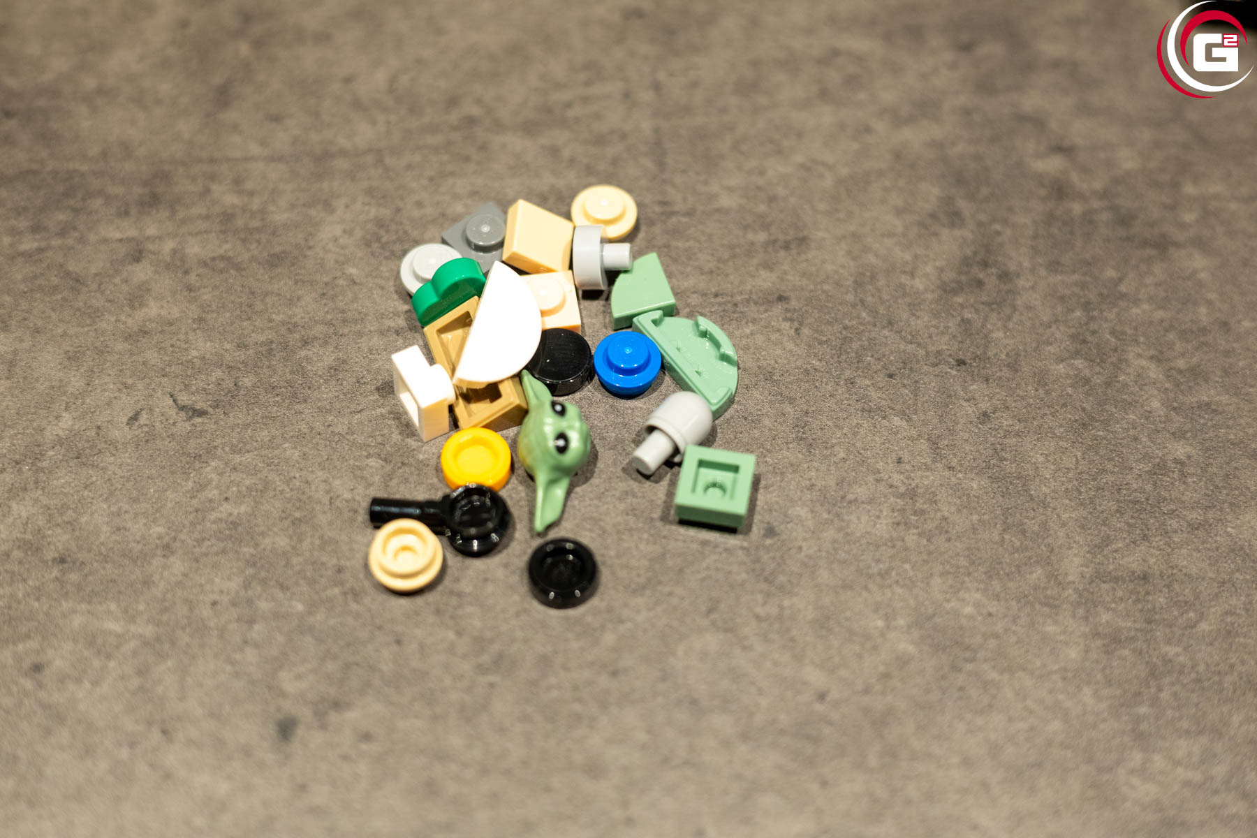 Mit der vierten Baustufe finalisieren wir Grogu, indem noch die beweglichen Ohren anbringen. Darüber hinaus bekommt er seine ikonische Kugel in die Hand und wir bauen noch eine kleine Drohne.