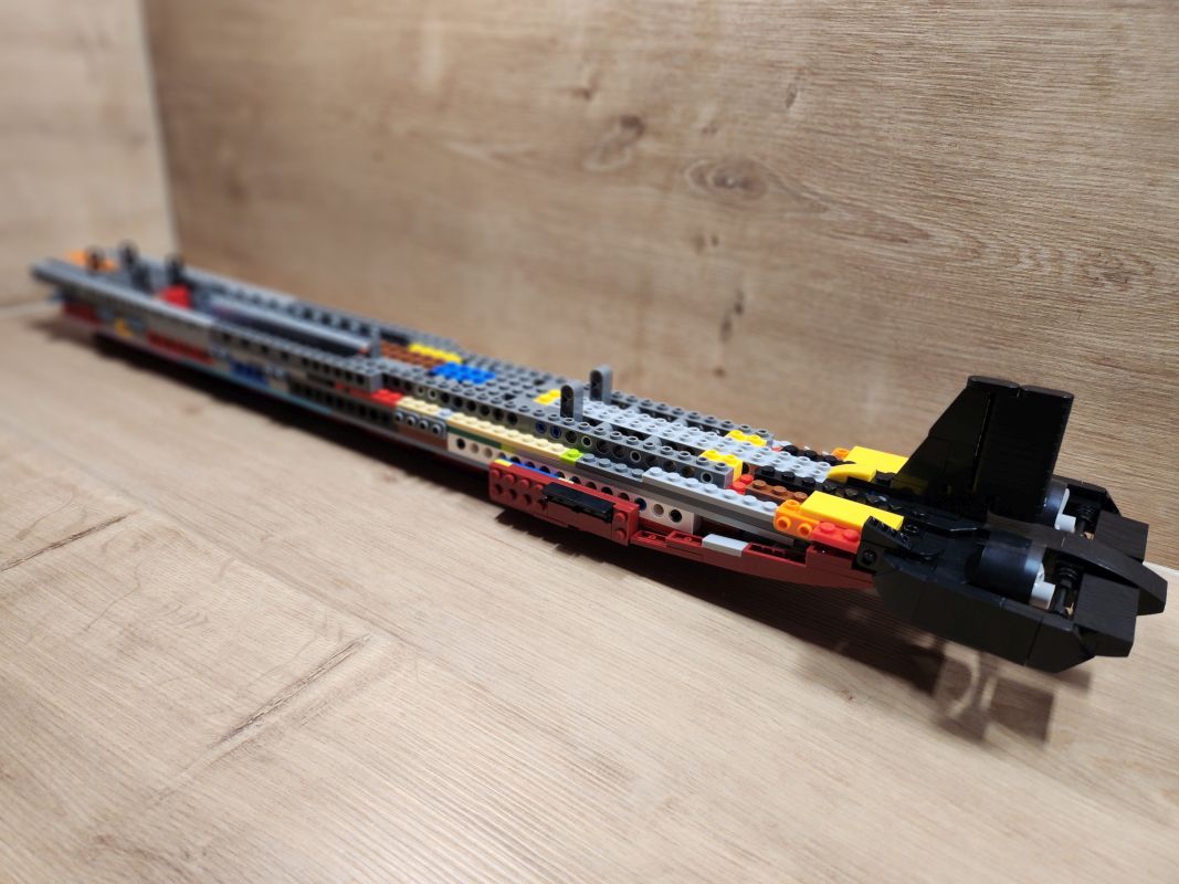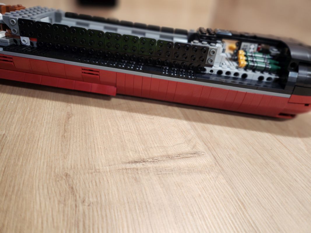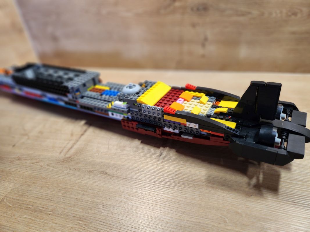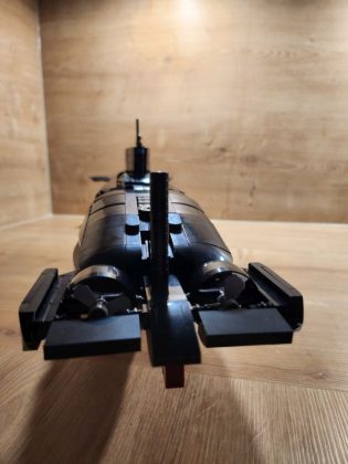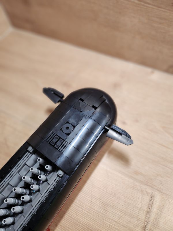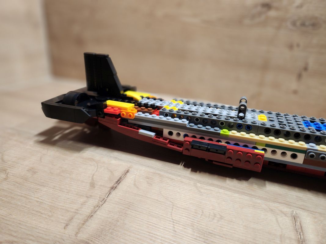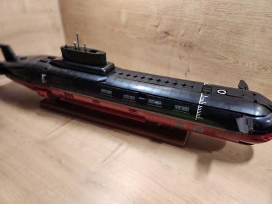Nach etlichen Stunden Bauzeit steht sie schließlich da: die Reobrix Typhoon, mächtig, beeindruckend und detailreich. Die markante Doppelkonstruktion des echten Typhoon-Rumpfs wurde hervorragend umgesetzt. Besonders die Linienführung und die schiere Größe machen das Modell zu einem echten Hingucker. Der Maßstab 1:250 wirkt perfekt gewählt, groß genug für beeindruckende Details, klein genug, um noch auf ein Regal oder Sideboard zu passen. Der stabile Ständer sorgt dabei für eine sichere Präsentation.