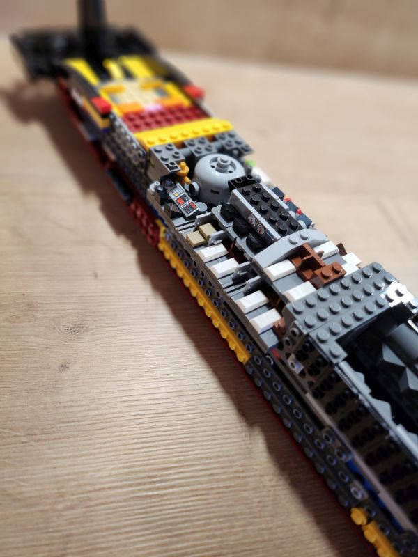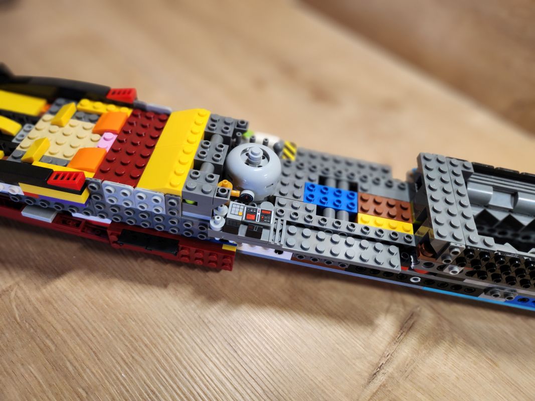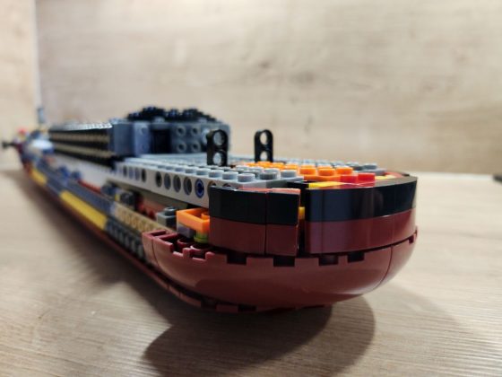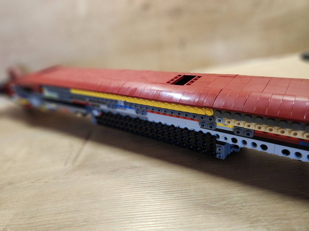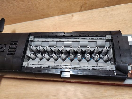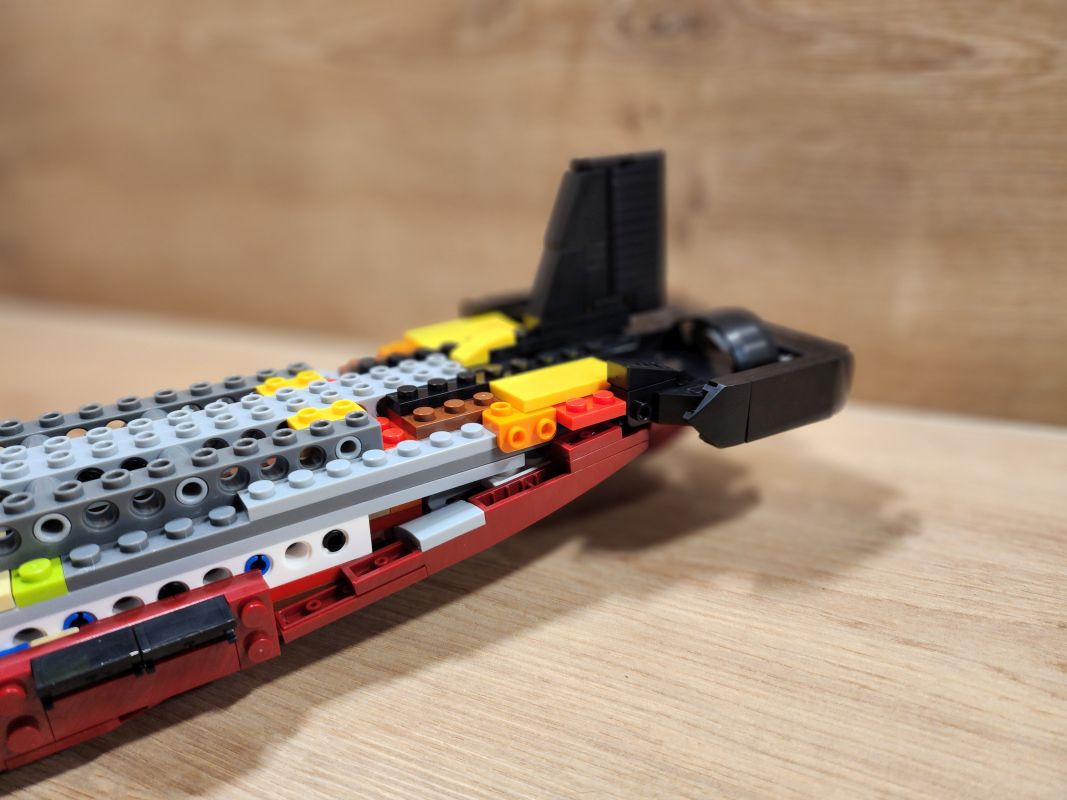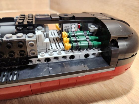 Nach etlichen Stunden Bauzeit steht sie schließlich da: die Reobrix Typhoon, mächtig, beeindruckend und detailreich. Die markante Doppelkonstruktion des echten Typhoon-Rumpfs wurde hervorragend umgesetzt. Besonders die Linienführung und die schiere Größe machen das Modell zu einem echten Hingucker. Der Maßstab 1:250 wirkt perfekt gewählt, groß genug für beeindruckende Details, klein genug, um noch auf ein Regal oder Sideboard zu passen. Der stabile Ständer sorgt dabei für eine sichere Präsentation.