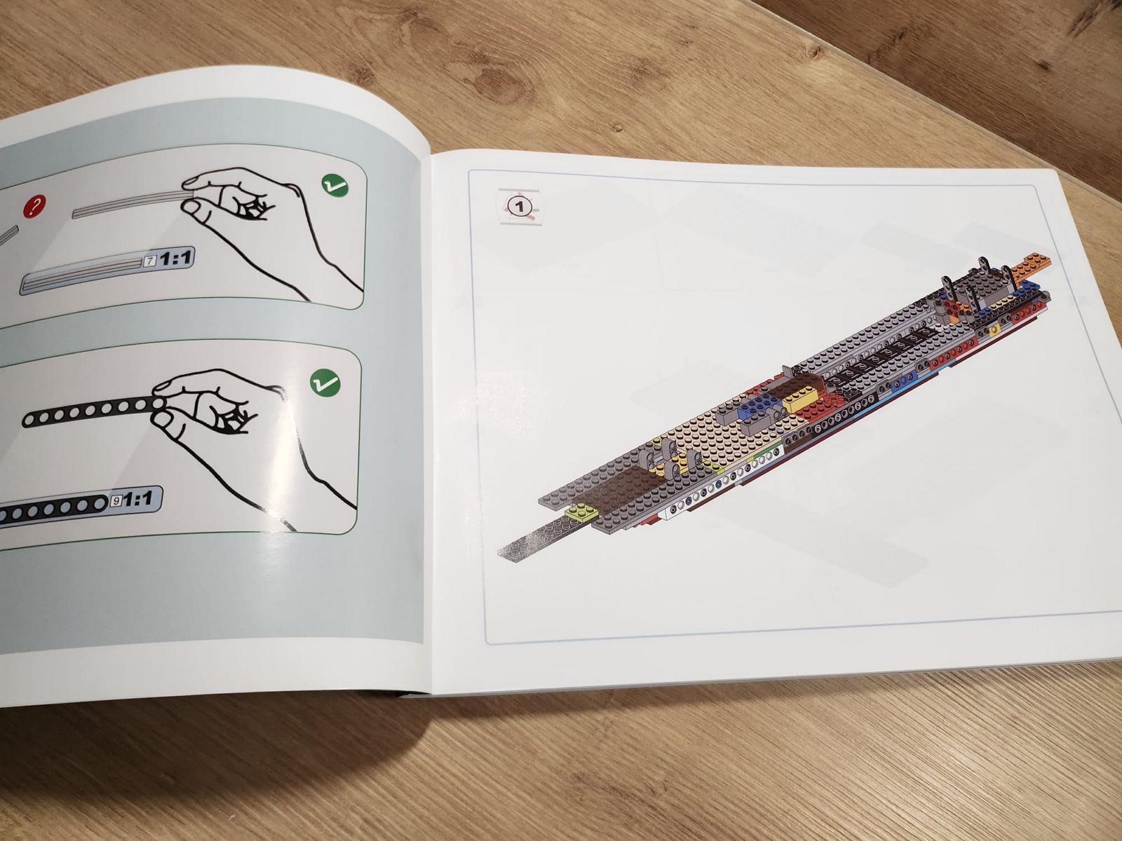 Der Bau begann erfreulich: sauber strukturierte Schritte, gute Passform der Teile, stabile Grundkonstruktion. Doch nach den ersten Kapiteln kamen auch die ersten Stolpersteine. Ein besonders ärgerlicher Moment war eine offensichtlich fehlerhafte Anweisung, bei der ein langer Stab durch Bauteile geführt werden sollte, die laut Anleitung gar keine Löcher besitzen. Der Fehler lässt sich zwar beheben, kostet aber Zeit und Nerven. Kurz darauf folgte die größte Geduldsprobe des gesamten Sets: die sogenannten „Nagel“-Verbindungsstücke, die der Stabilität dienen. Selbst bei perfekt ausgerichteten Löchern waren sie extrem schwer einzusetzen, was phasenweise fast zum Einsatz eines Hammers geführt hätte. Wer empfindliche Finger hat, sollte hier vorsichtig sein oder auf ein Gummihämmerchen zurückgreifen.