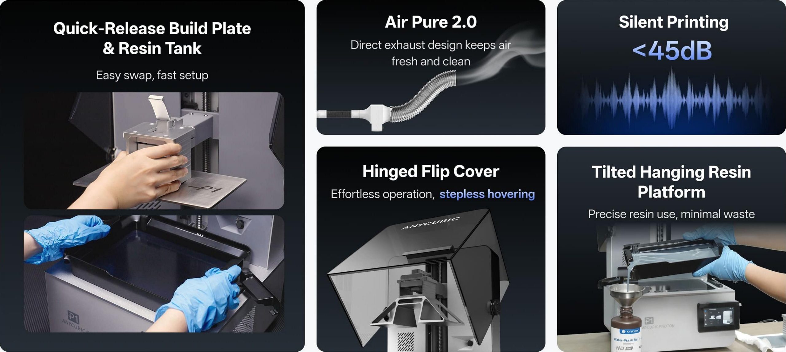 Für die Resinwanne kommt eine Wave-Release- und NFEP-Folie zum Einsatz. So wird die Druckstabilität und Oberflächenqualität weiter verbessert. Die zum Ablösen notwenige Kraft wird um 60 % reduziert, was besonders feinen Drucken zugutekommt.