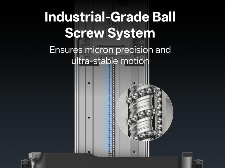 Die Kugelumlaufspindel verleiht der z-Achse eine besonders zuverlässige Positionierbarkeit mit einer Wiederholgenauigkeit von ± 0,01 mm über 10.000 Zyklen. Auch das Display ist besonders präzise ausgerichtet und mit einer Toleranz von < 70 μm montiert. Dies stellt ebenso gleichmäßige Schichtdicken und glatte Oberflächenübergänge sicher. Als Bauplattform kommt eine präzise gefräste Stahlplatte mit einer Toleranz von weniger als 80 μm zum Einsatz. Für hochviskose Materialien kann auf eine optionale perforierte Stahlplatte zurückgegriffen werden.