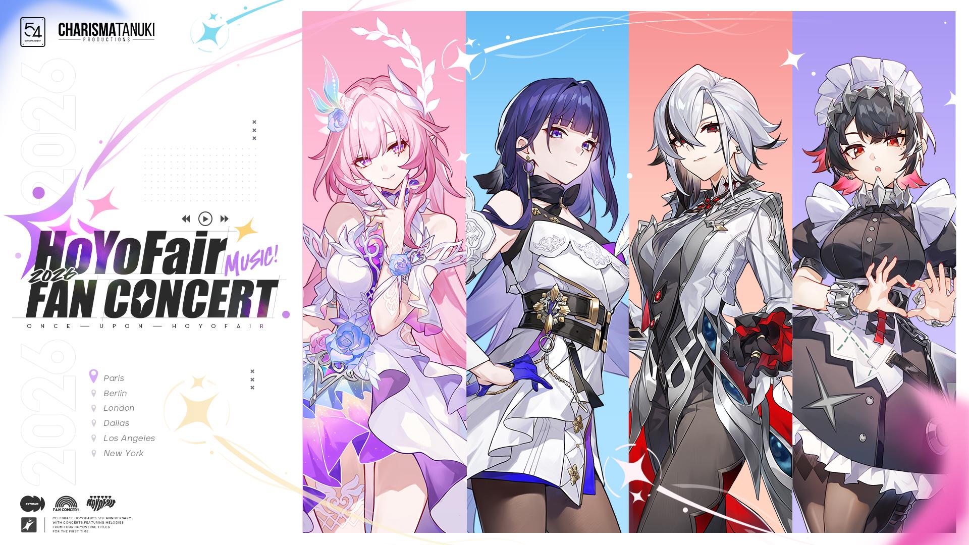 Zum fünfjährigen Jubiläum der HoYoFair im Jahr 2026 wird im kommenden Jahr erstmals das HoYoFair-Fan-Konzert stattfinden, eine feierliche Kooperation von 54 Entertainment und CHARISMA TANUKI PRODUCTIONS. Dieses besondere Event vereint beeindruckende musikalische Darbietungen aus Honkai: Star Rail, Genshin Impact, Zenless Zone Zero und Honkai Impact 3rd zu einem multimedialen Erlebnis, das Fans in verschiedene HoYoverse Welten eintauchen lässt. Die Konzerttour ist für die erste Jahreshälfte 2026 in Frankreich, Deutschland, Großbritannien und den USA geplant. Der offizielle Vorverkauf startet am 28. November 2025.