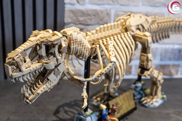 Das Set LEGO Jurassic World 76968 – Dinosaurier-Fossilien: Tyrannosaurus rex ist ein beeindruckendes Highlight für jeder LEGO-Dino-Sammlung. Mit einer Länge von 105 cm und einer Höhe von 33 cm zählt es zu den größten LEGO-Sets. Auch die Anzahl an Steinen ist mit 3145 eindrucksvoll. Das Modell ist ein detailliertes Abbild des Skeletts eines Tyrannosaurus rex im Maßstab 1:12 mit beweglichem Kopf, Kiefer und Schwanz. Die große Infoplakette und der Modellständer verleihen dem fertigt aufgebauten Skelett einen musealen Charakter. Eine Reihe von Easter-Eggs und die Figuren von Dr. Elli Sattler und Dr. Alan Grant stellen einen schönen Bezug zu den Filmen her.