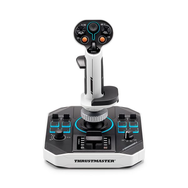Der Sol-R 1 Flightstick ist ein präziser, beidhändig nutzbarer Joystick, der speziell für den Einsatz in Weltraum-Simulationen entwickelt wurde. Er verfügt über einen abnehmbaren Griff, eine zentrale Schubkontrolle und ermöglicht insgesamt 44 frei zuweisbare Aktionen. Mit 21 Aktionstasten, darunter zwei Trigger (einer davon zweistufig), zwei Hat-Schaltern, einem Ministick und einem Daumenrad, bietet der Flightstick umfangreiche Steuerungsmöglichkeiten für unterschiedliche Spielsituationen. Die drei Hauptachsen (X, Y und Z) arbeiten mit der H.E.A.R.T. HallEffect AccuRate Technology™ und liefern 16-Bit-Präzision, ergänzt durch fünf virtuelle Achsen, die über Schubhebel, Ministick und Daumenrad realisiert werden. Für ergonomischen Komfort sorgen austauschbare Auflageflächen für Daumen und Handgelenk, die je nach Bedarf für die rechte oder linke Hand angepasst werden können. Optisch setzt der Flightstick auf ein markantes Design mit elf softwaregesteuerten RGB-Zonen, die an Science-Fiction-Ästhetik angelehnt sind. Zudem ist das Gerät kompatibel mit dem Thrustmaster-Ökosystem: Der Sol-R 1 Griff kann auf einer AVA-Basis verwendet werden, während die Sol-R-Basis auch mit verschiedenen Thrustmaster-Griffen wie Viper* und Hornet* kompatibel ist (*separat erhältlich).