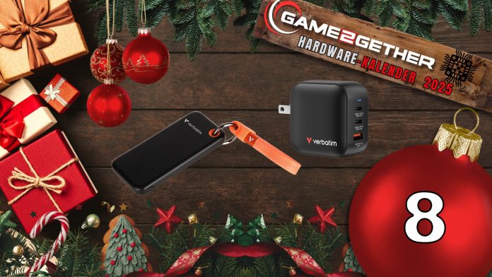 Am achten Tag unseres Hardware-Adventskalenders 2025 gibt es ein Bundle aus zwei Helferlein für unterwegs. Gemeinsam mit Verbatim verlosen wir zweimal ein Bundle aus der Pocket SSD mit einer Kapazität von 1 TB und dem GaN-Ladegerät mit einer Leistung von 70 W.