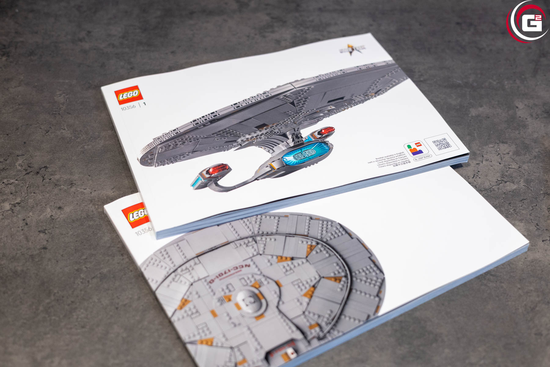 In der beiliegenden Bauanleitung wird der Aufbau des Sets LEGO Icons 10356 – Star Trek USS Enterprise NCC-1701-D wie gewohnt sehr detailliert dargestellt und kleinschrittig beschrieben. Darüber hinaus kann man auch auf die LEGO-Builder-App (iOS und Android) zurückgreifen. Hier finden sich noch detaillierte Anleitungen, in denen man auch jede Ansicht beliebig drehen kann.
