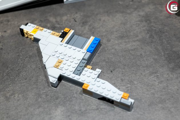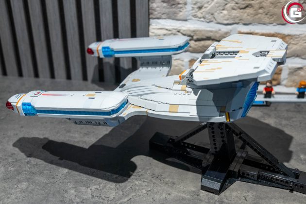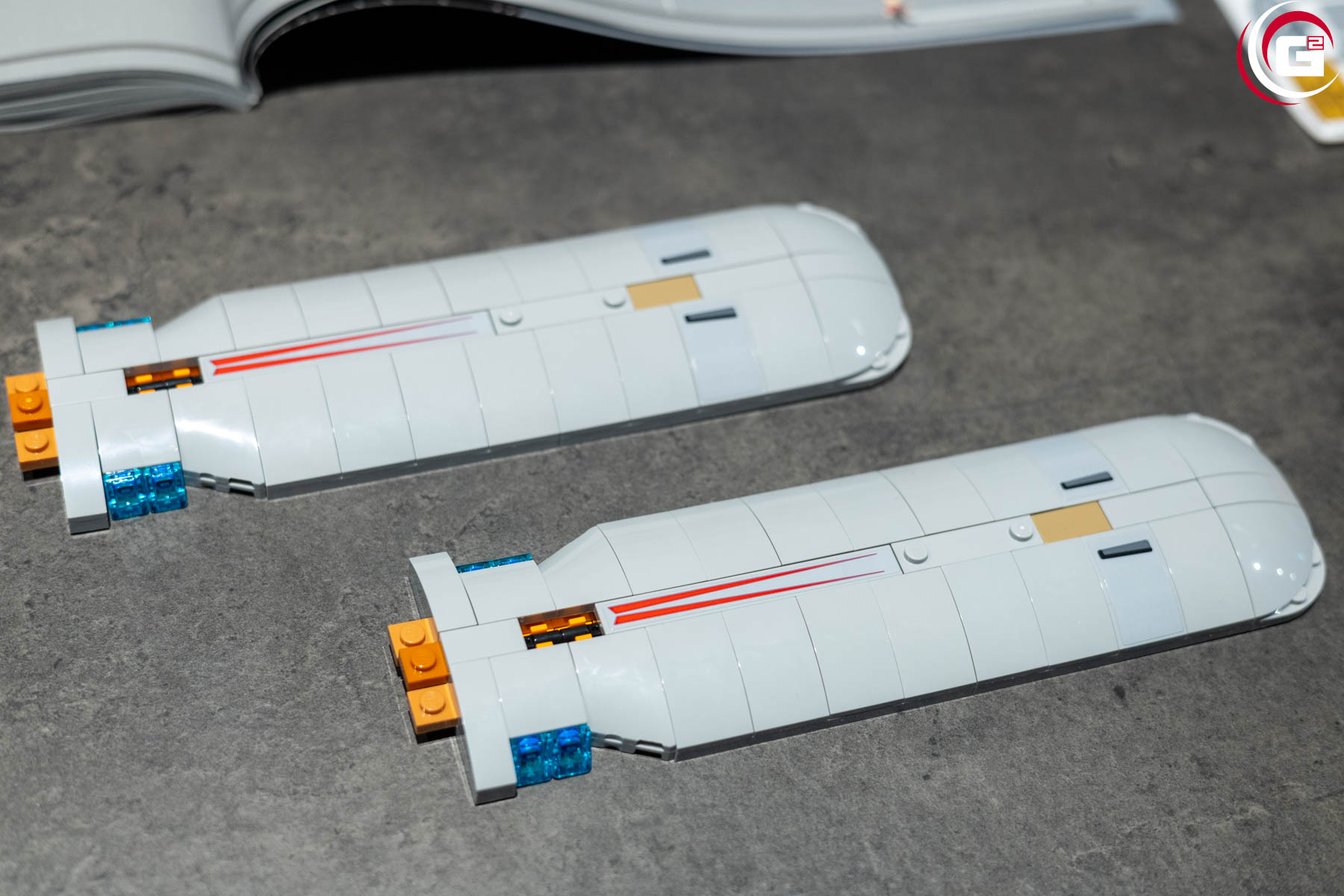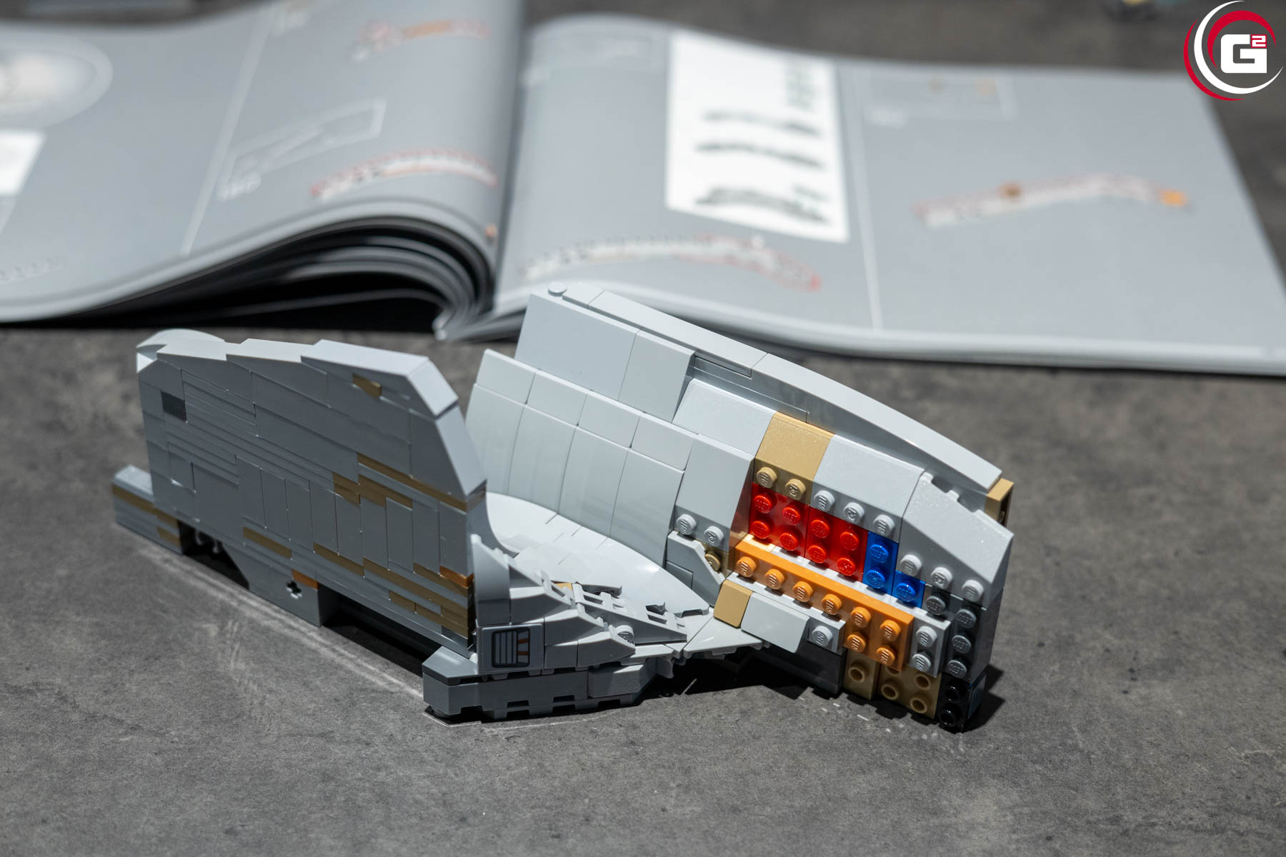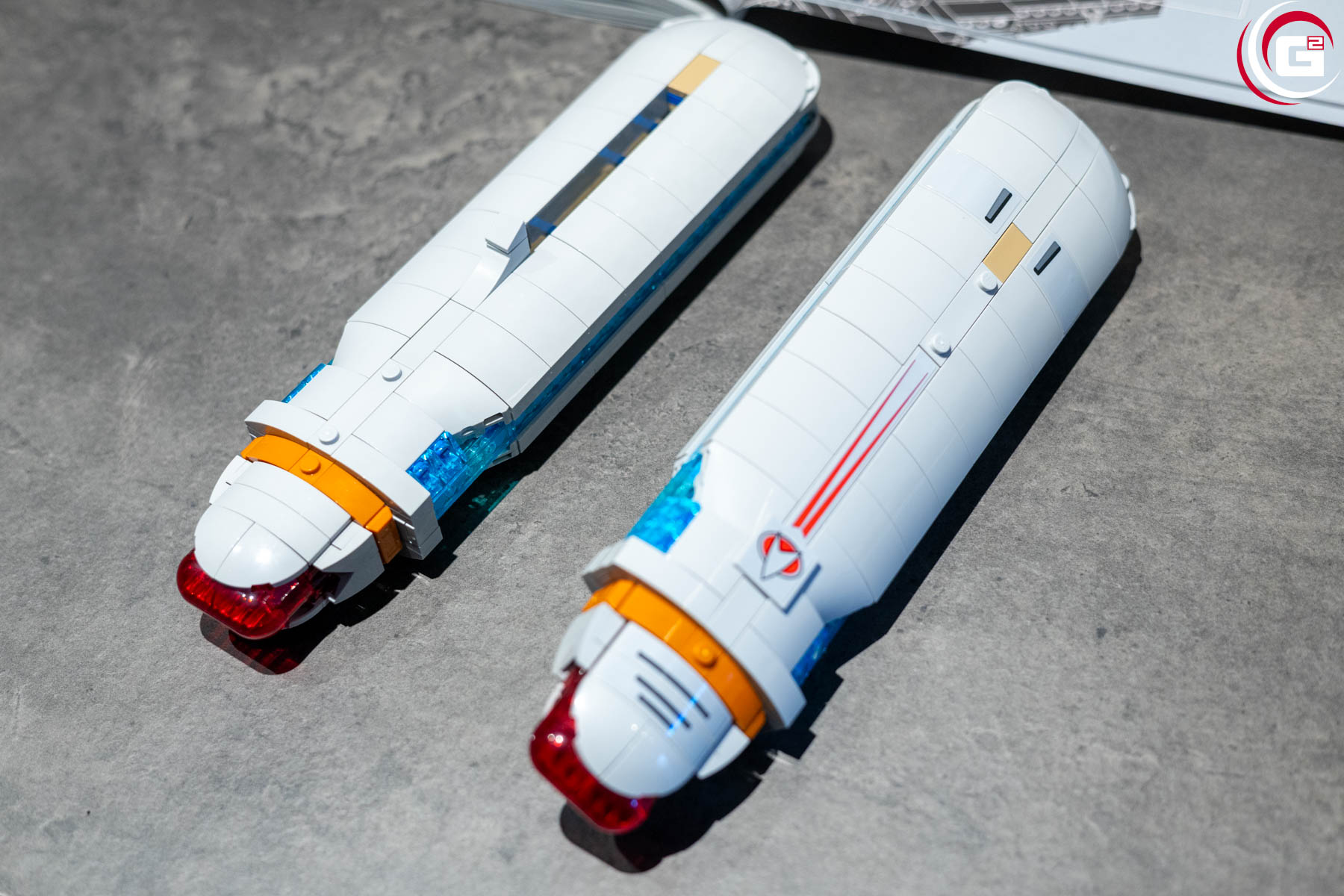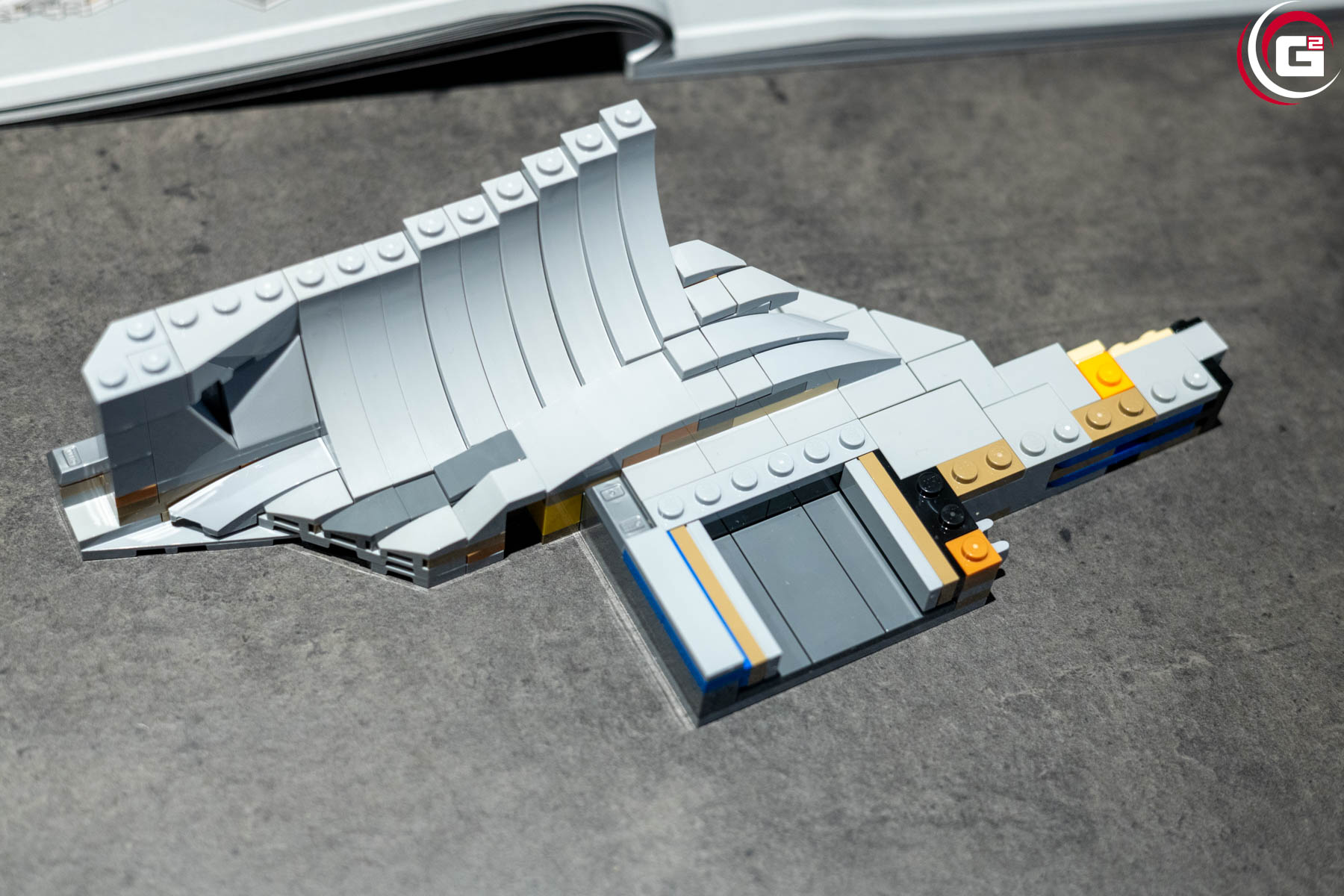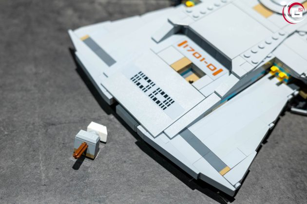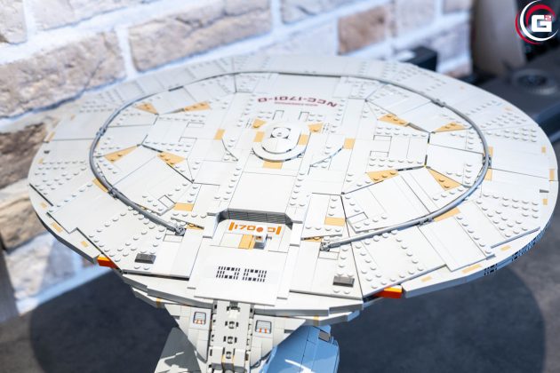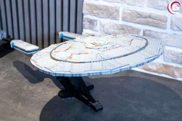 Der Detaillierungsgrad des Modells ist extrem gut gelungen. Zudem sorgt eine sehr elegante Kombination von Steinen und Bautechniken für eine wirklich ovale Untertassensektion und geschwungene Konturen an der Antriebssektion. Obwohl das Modell zerlegbar ist, sind beide Sektionen bombenfest miteinander verbunden und lassen sich durch den eleganten Arretierungsmechanismus dennoch leicht lösen.