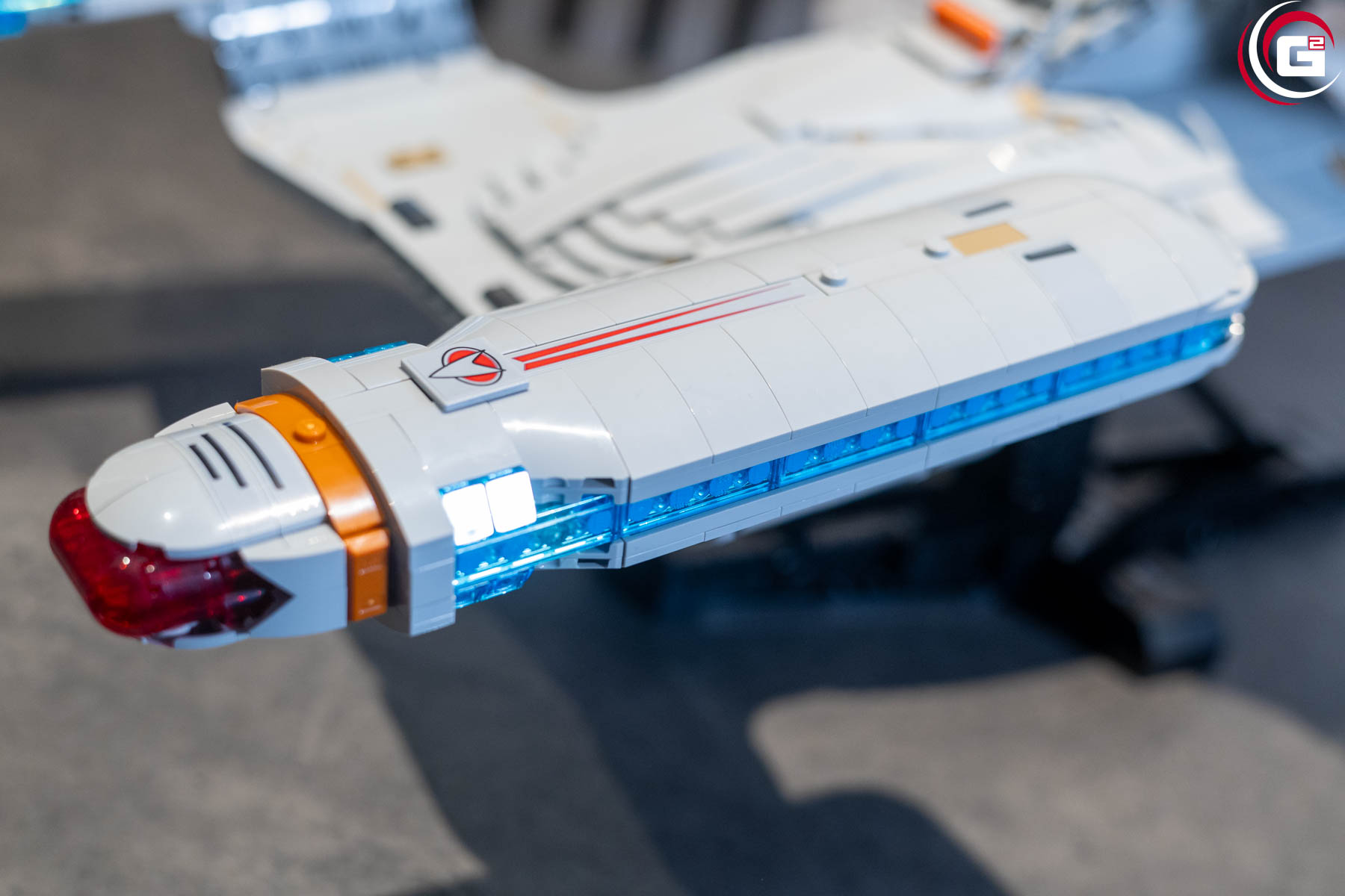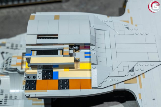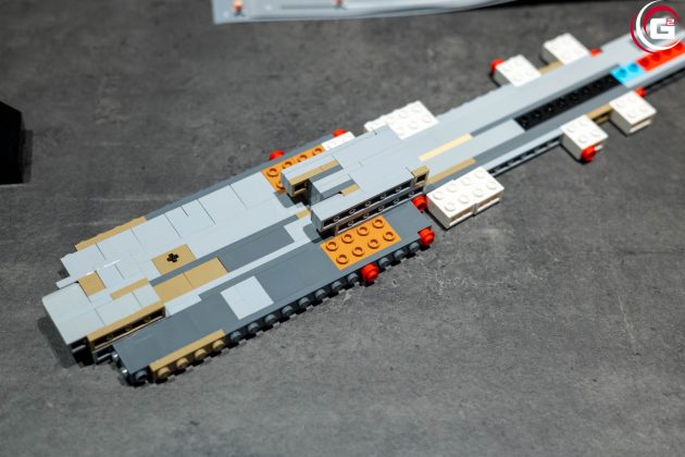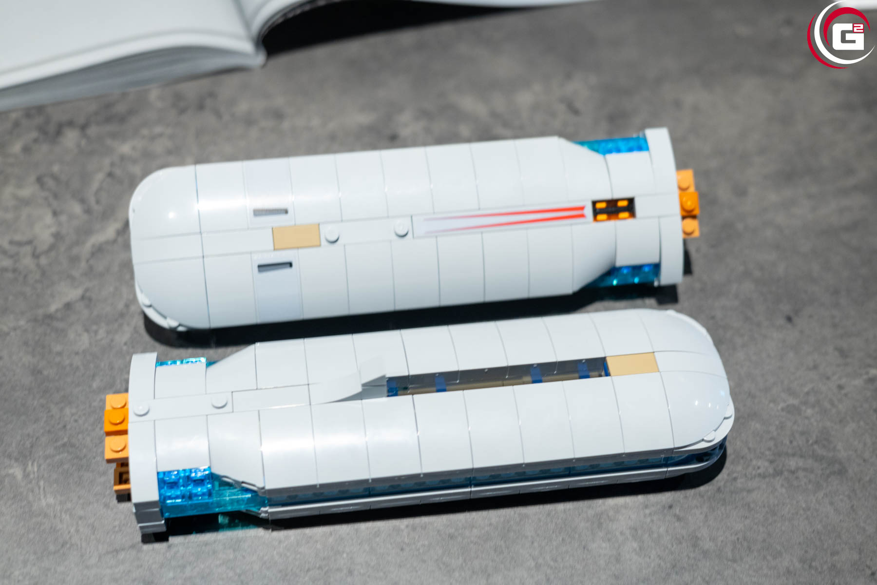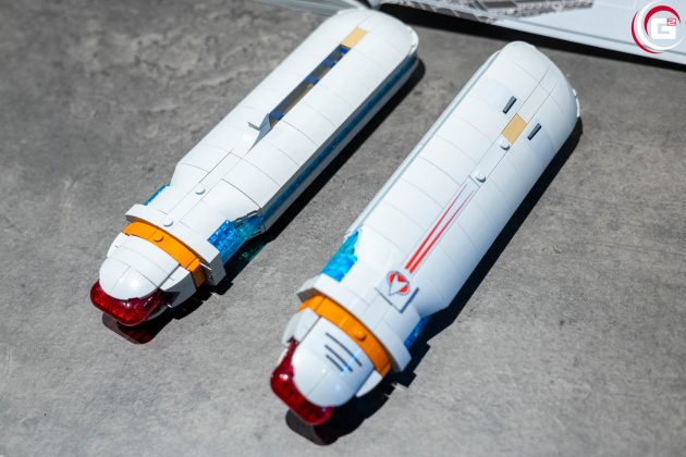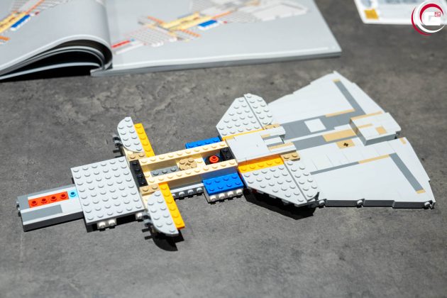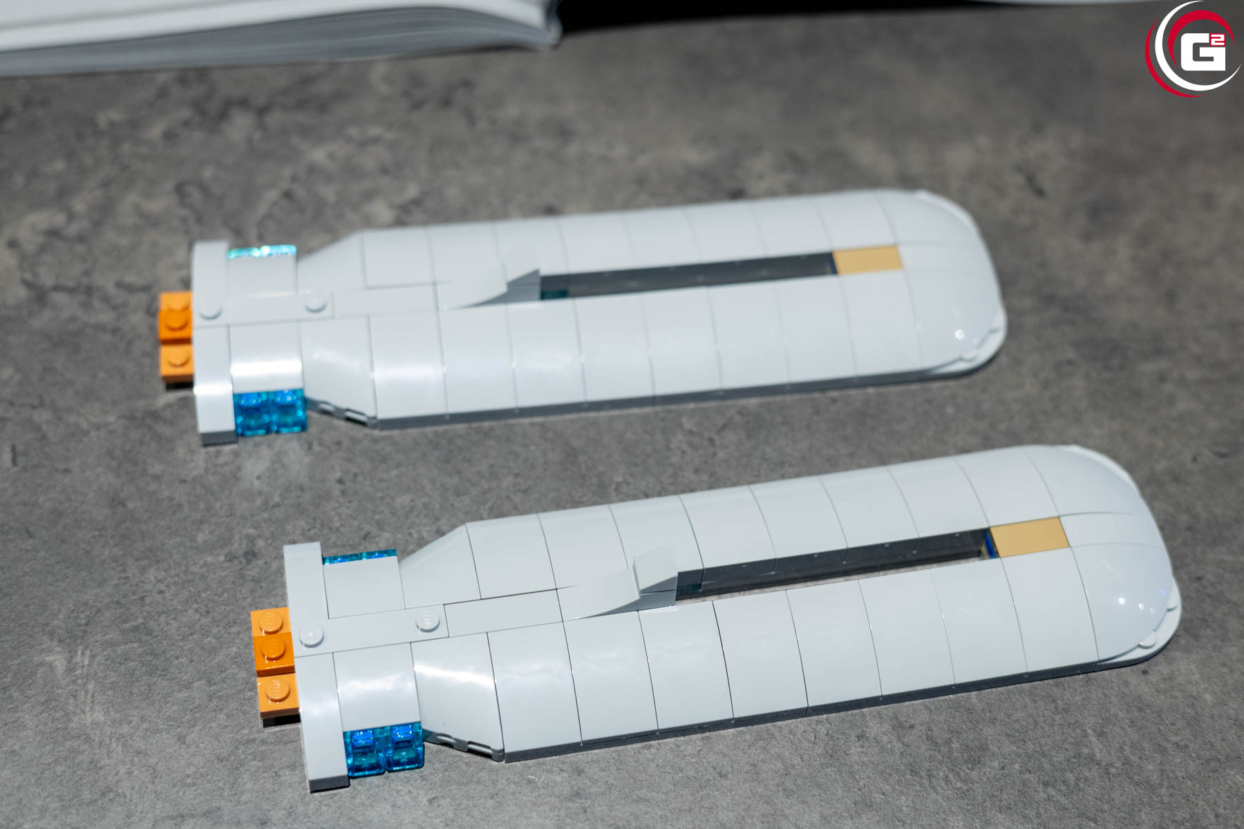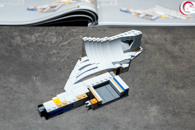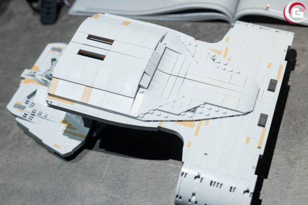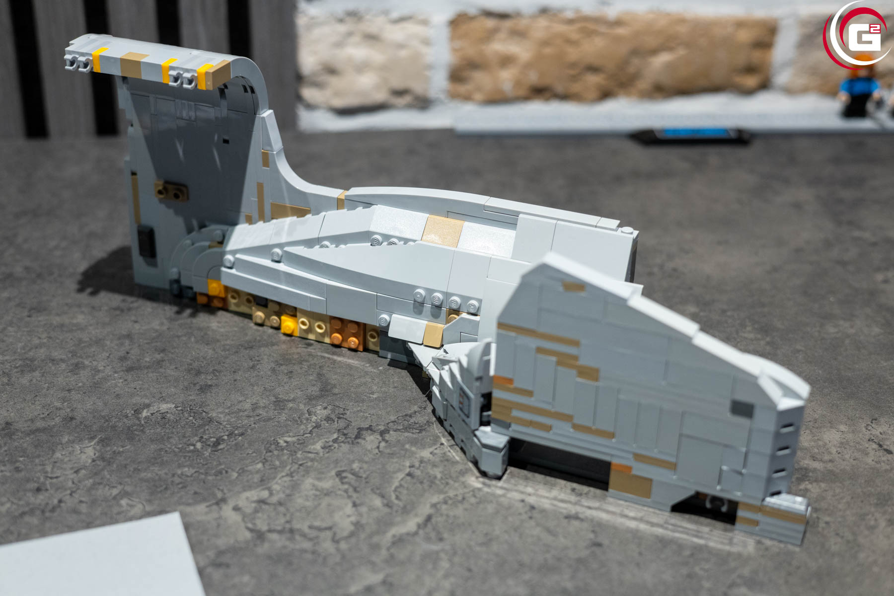Der Detaillierungsgrad des Modells ist extrem gut gelungen. Zudem sorgt eine sehr elegante Kombination von Steinen und Bautechniken für eine wirklich ovale Untertassensektion und geschwungene Konturen an der Antriebssektion. Obwohl das Modell zerlegbar ist, sind beide Sektionen bombenfest miteinander verbunden und lassen sich durch den eleganten Arretierungsmechanismus dennoch leicht lösen.